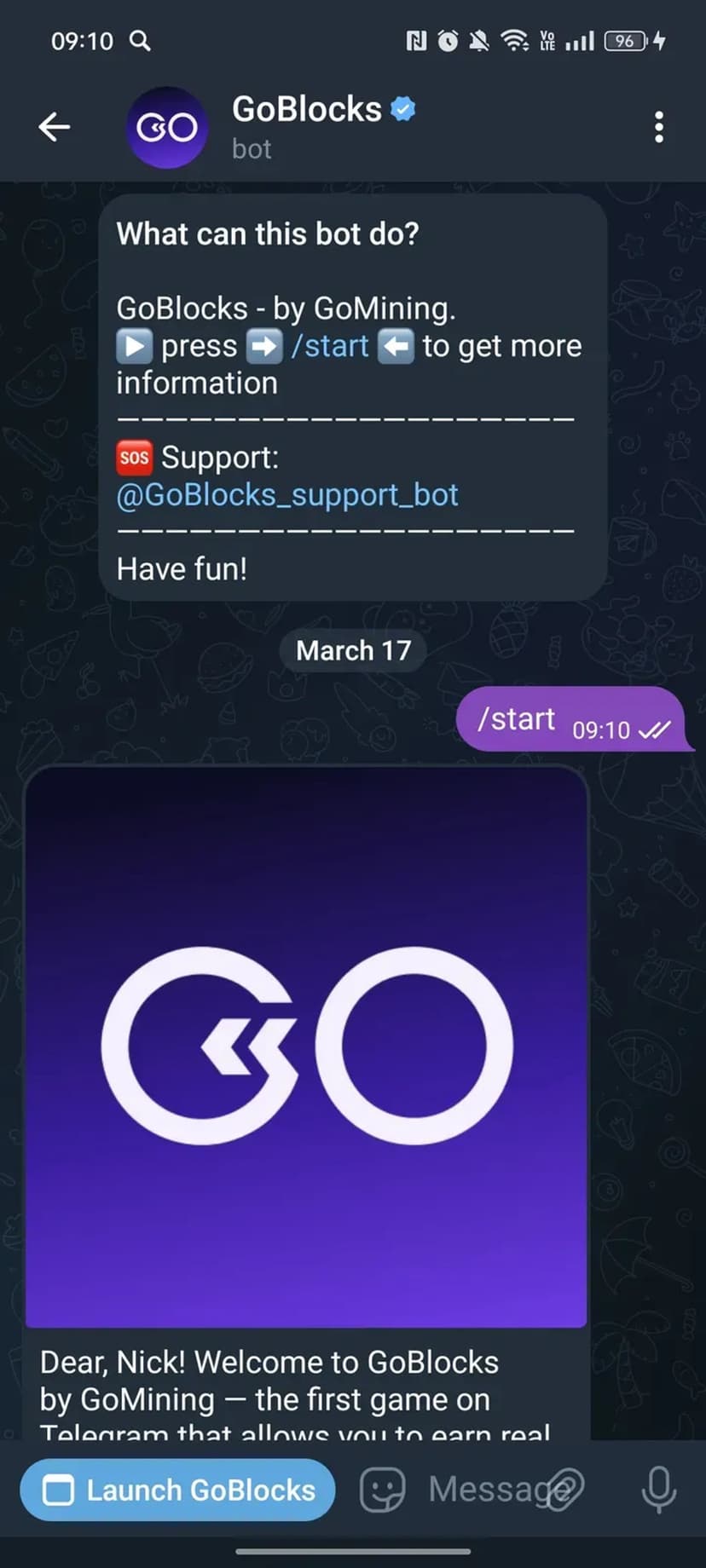*Нажимая "Открыть в Telegram", вы перейдете к приложению GoBlocks в мессенджере Telegram