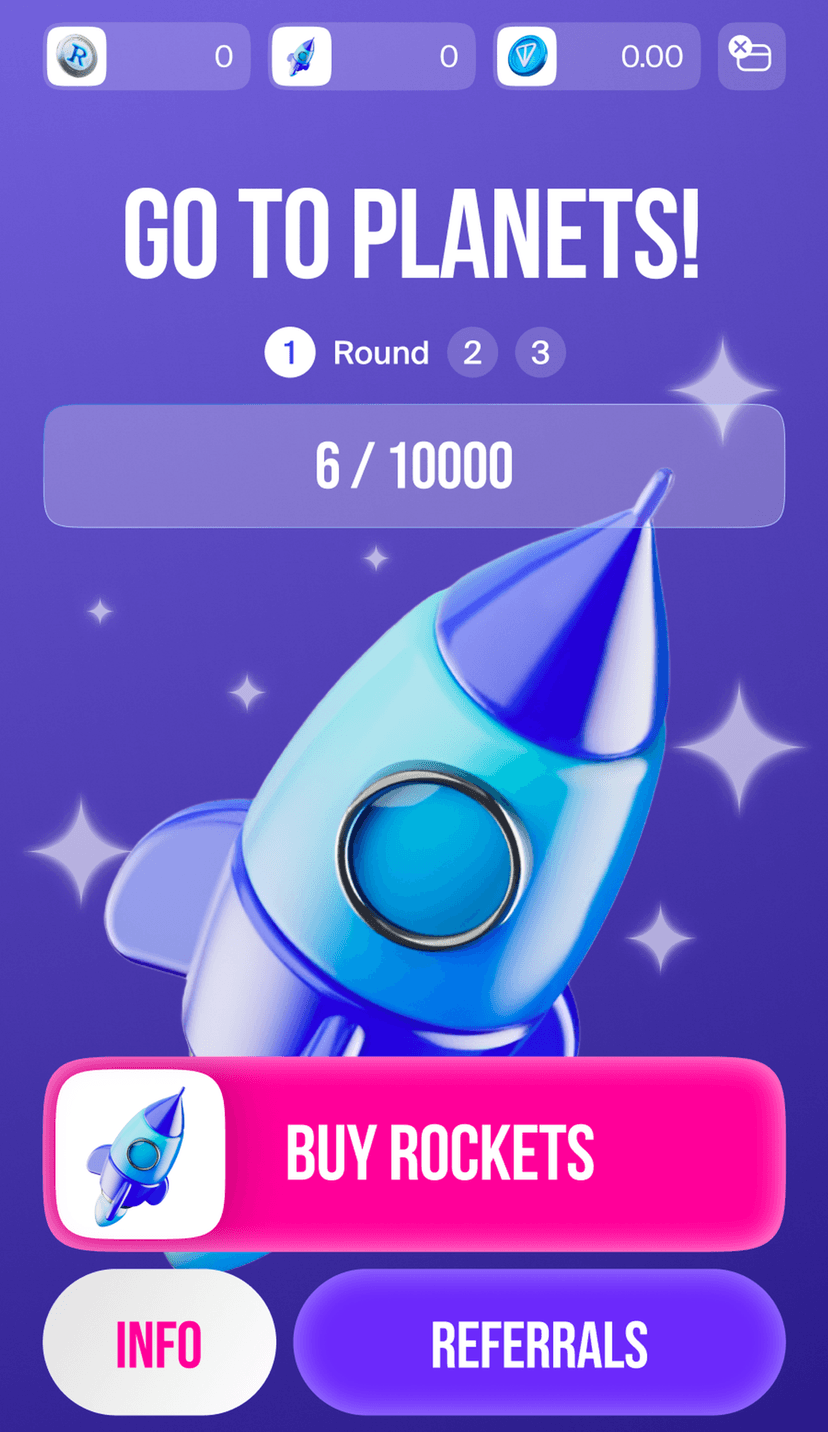 Go To Planets — космическая крипто-игра на базе TON. Игроки накапливают ракеты для путешествий между планетами, собирают ресурсы и обменивают их на внутриигровую валюту Rocket Coin.