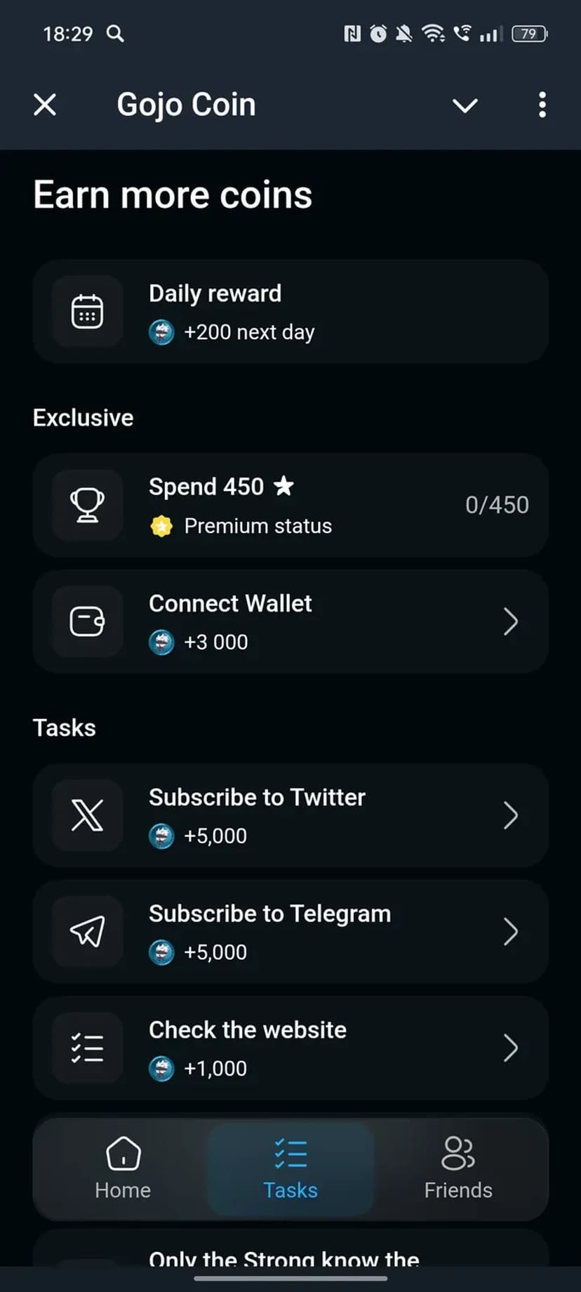 *Нажимая "Открыть в Telegram", вы перейдете к приложению Gojo Coin в мессенджере Telegram
