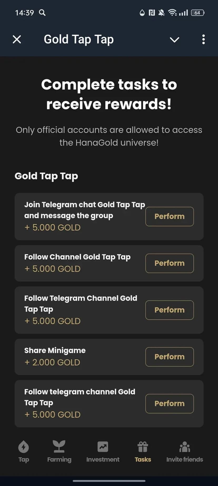 Gold Tap Tap — мини‑приложение в Telegram, где пользователи получают токены GOLD простыми и понятными действиями.