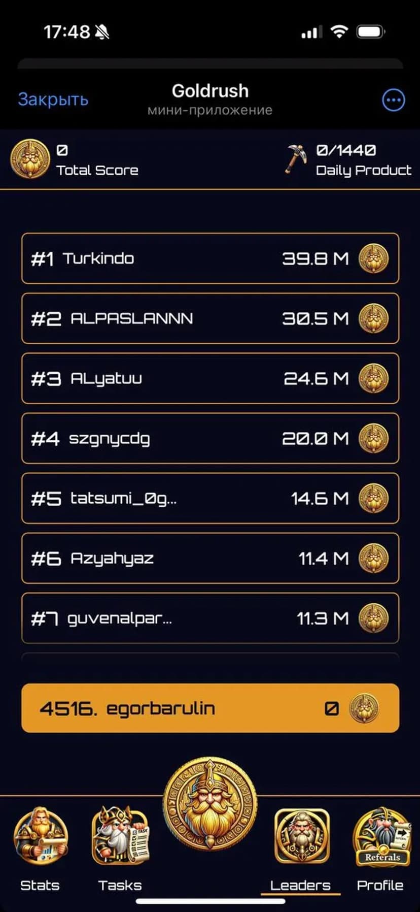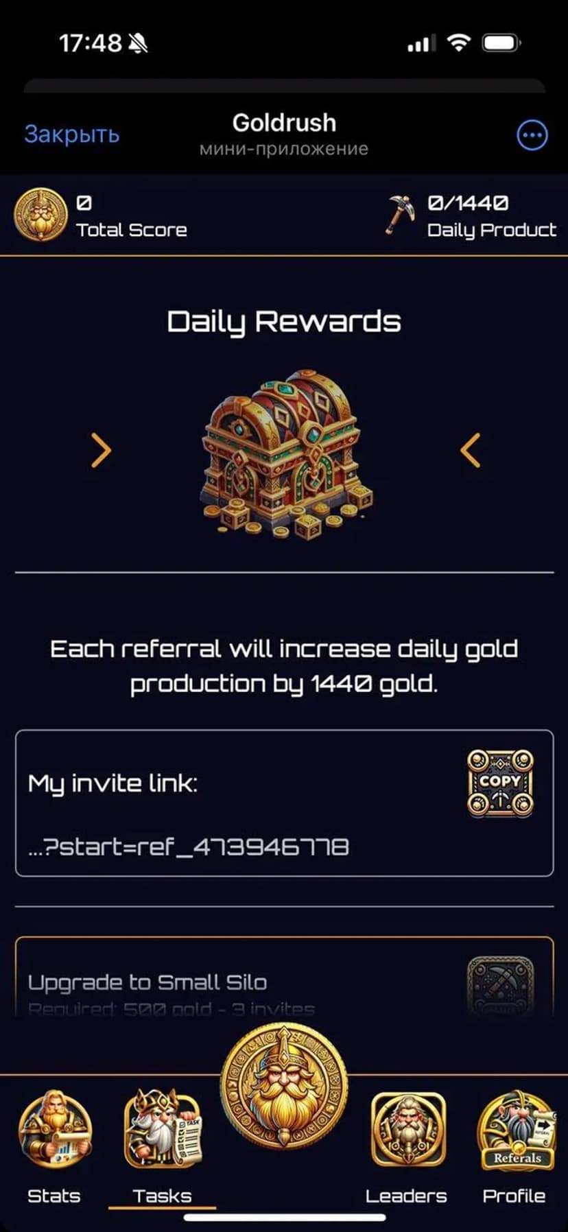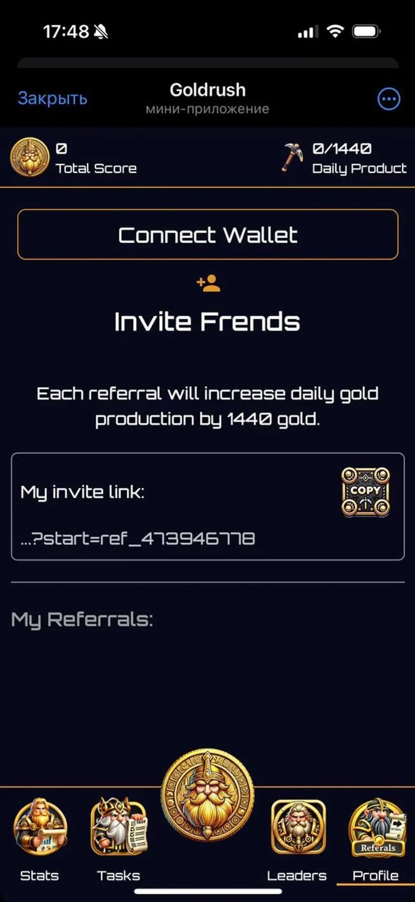 *Нажимая "Открыть в Telegram", вы перейдете к приложению Goldrush в мессенджере Telegram