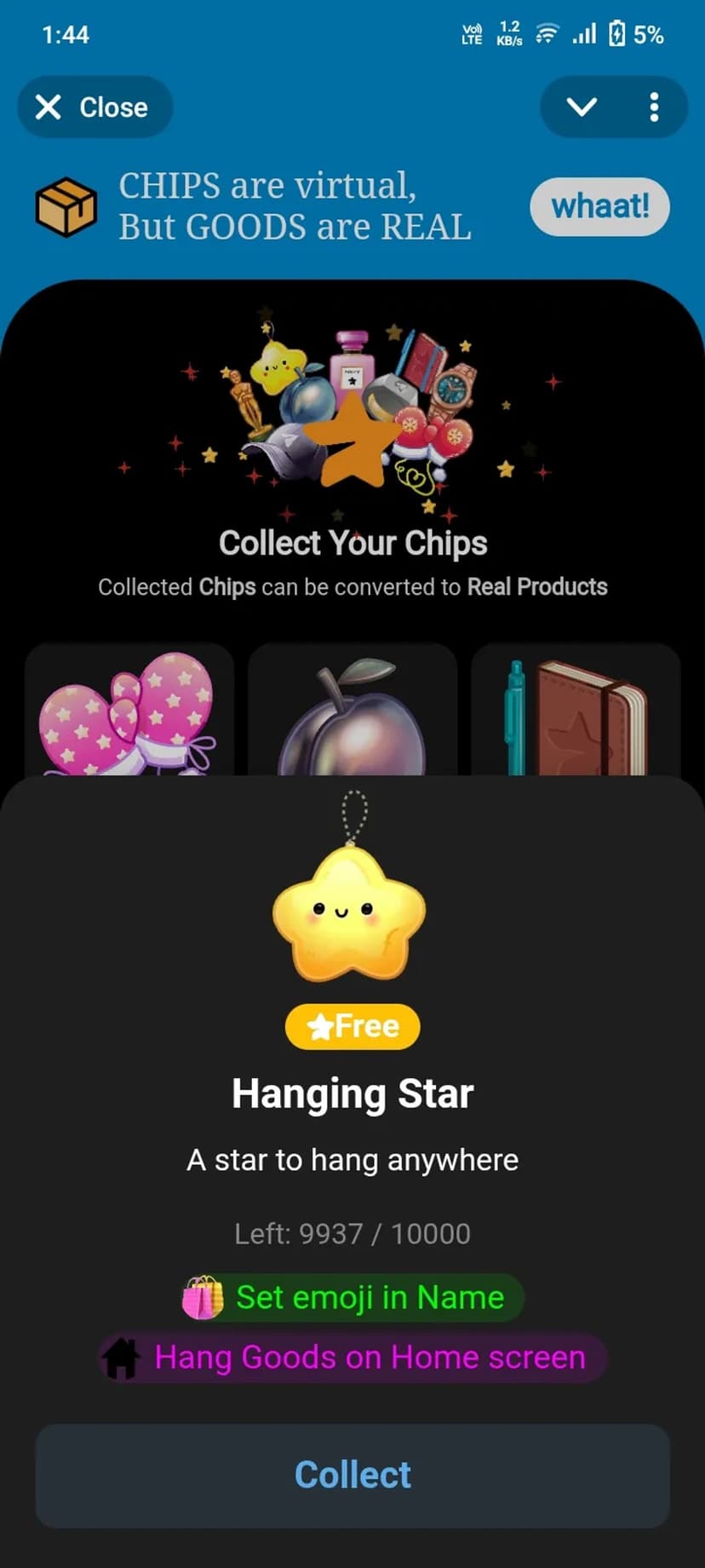 GOODS объединяет коллекционирование цифровых чипов и NFT с возможностью получения физических призов. Пользователи собирают уникальные предметы, участвуют в специальных акциях и затем обменивают собранные позиции на реальные товары — от электроники до модных аксессуаров.