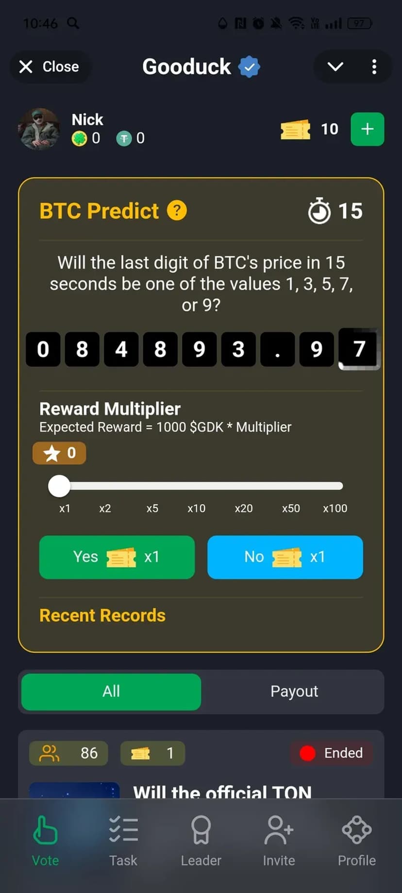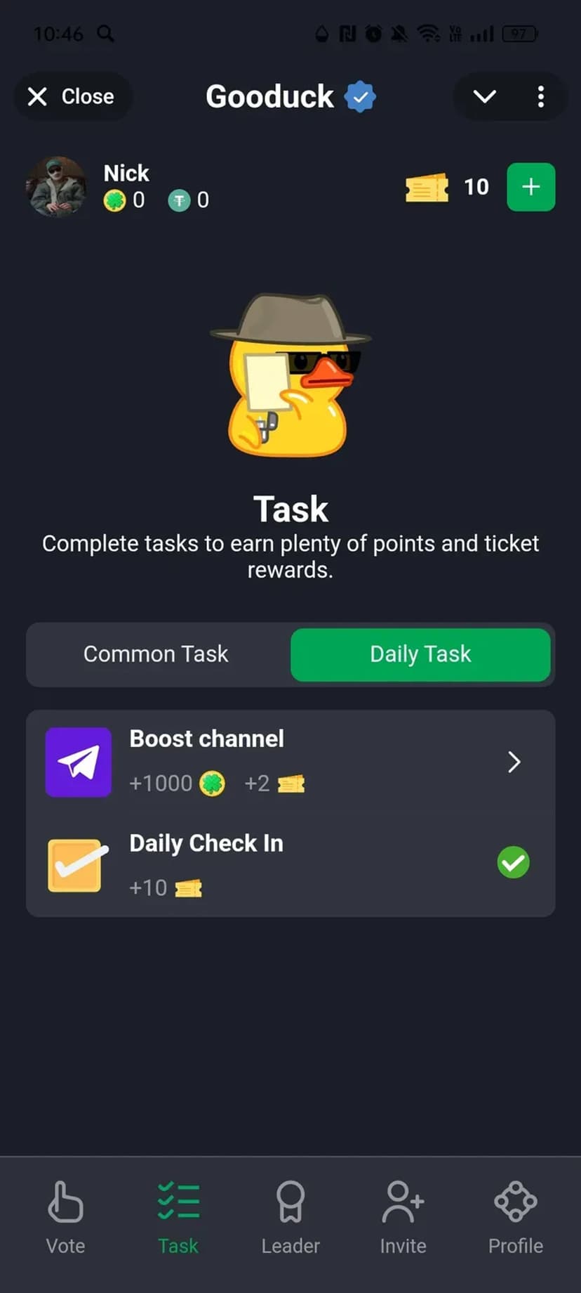 Gooduck — платформа прогнозов в Telegram, где пользователи делают быстрые предсказания по событиям и получают вознаграждение в USDT.