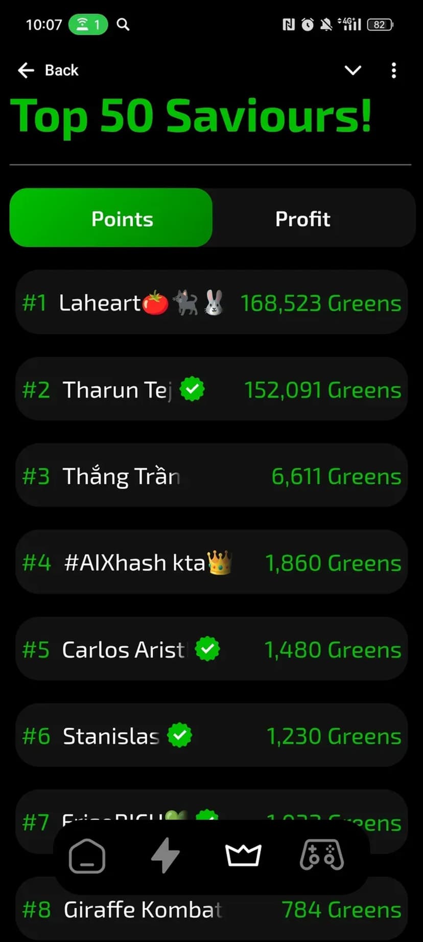 Green предлагает простой интерфейс с фокусом на объединении пользователей в кланы для достижения общей цели — «озеленения» рынка. При первом запуске видно ключевые действия: присоединиться к клану, следить за общим прогрессом и получать вознаграждения за вклад.