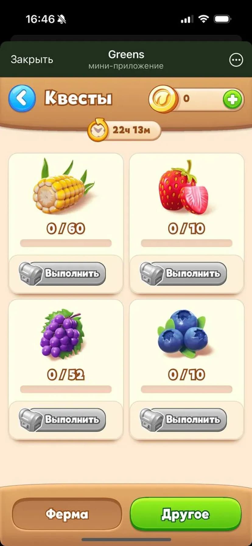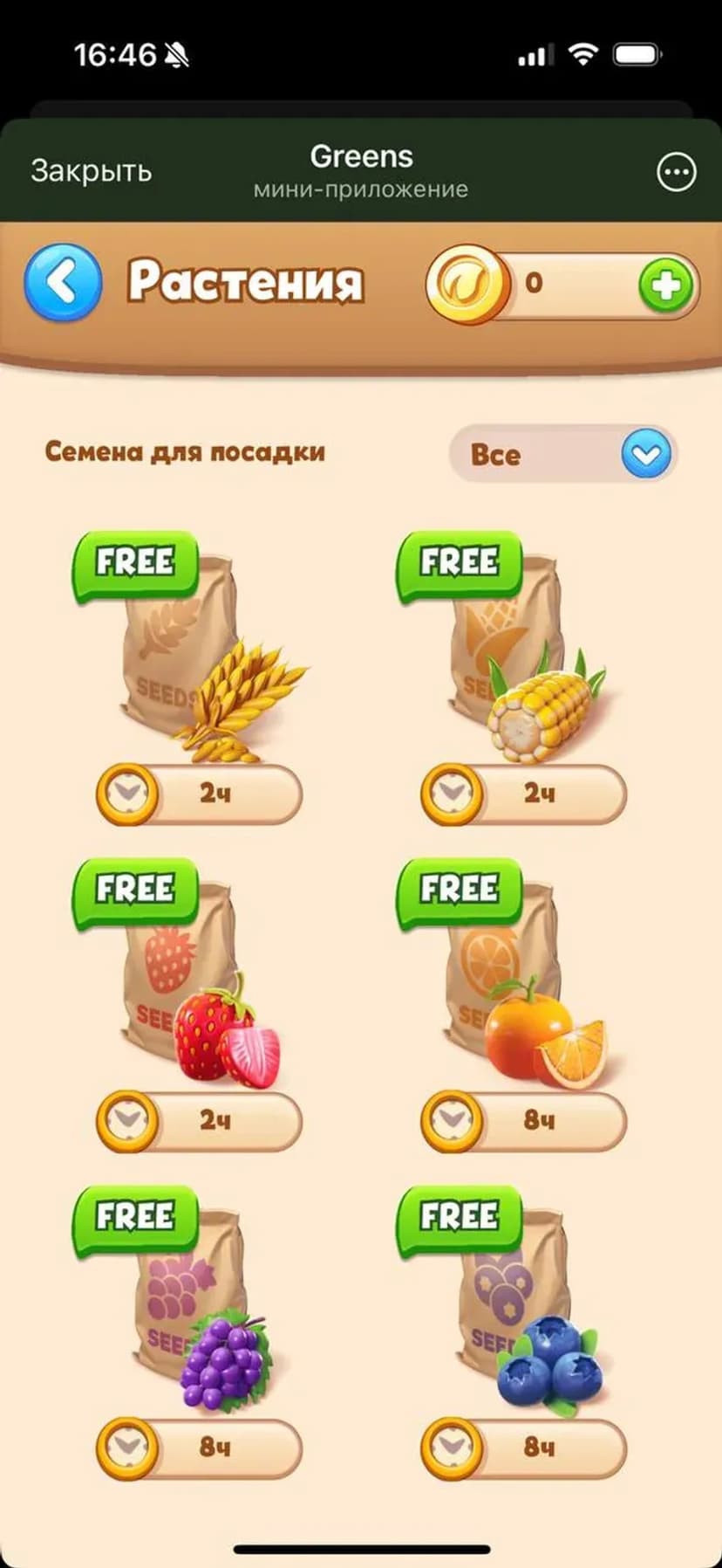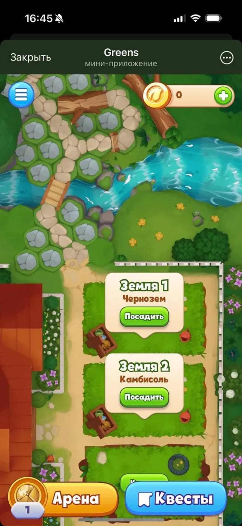 Greens — мобильная стратегия-ферма, где вы развиваете виртуальную агроэкосистему, выращивая культуры, управляя ресурсами и расширяя собственную ферму прямо в чате.