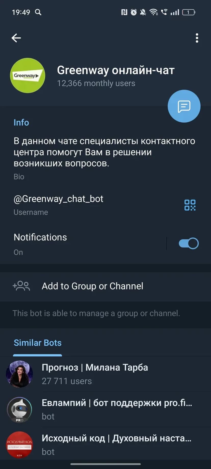 Консультации контактного центра Greenway в чате Telegram — быстро и удобно