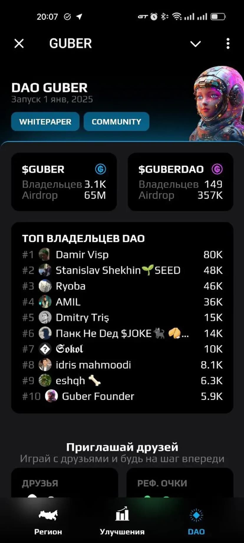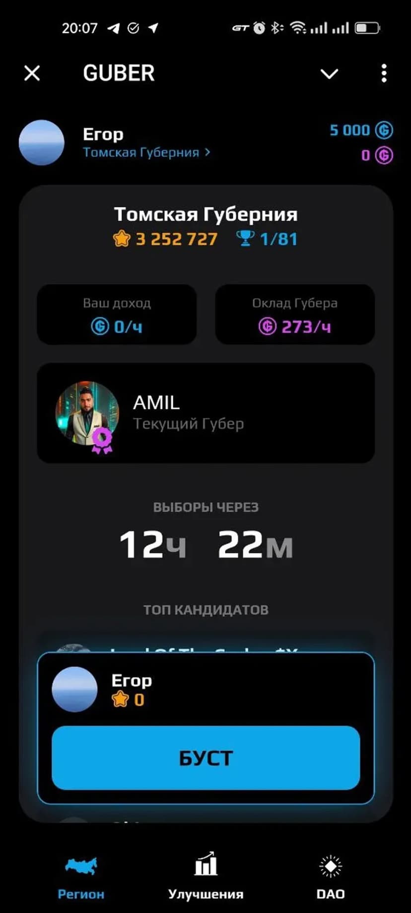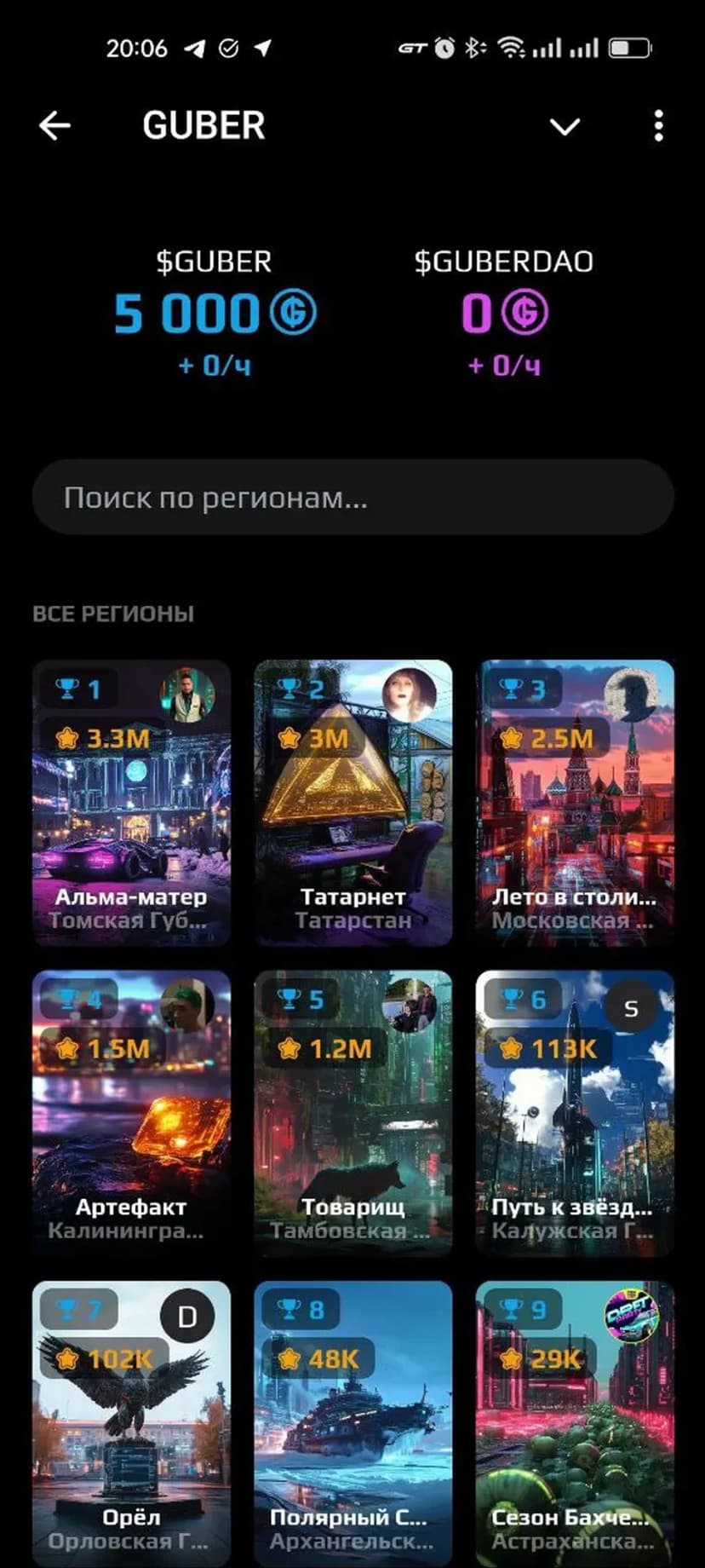 GUBER — многопользовательская PvP MemeFi Web3-стратегия, в которой вы выступаете губернатором виртуального региона. Развивайте экономику, инфраструктуру и культуру, используя игровые токены и уникальные NFT-карты для получения игровых преимуществ.