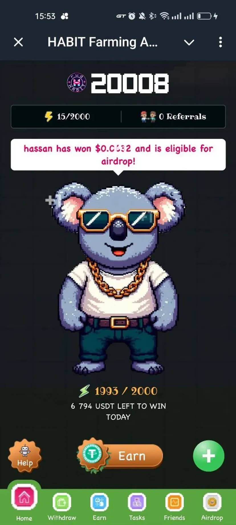 HABIT AI Agentic Trading App сочетает автоматический майнинг и игровые механики для ежедневного получения rwdHABIT. Накопления можно использовать для участия в будущем airdrop $HABIT или конвертировать в USDT мгновенно.