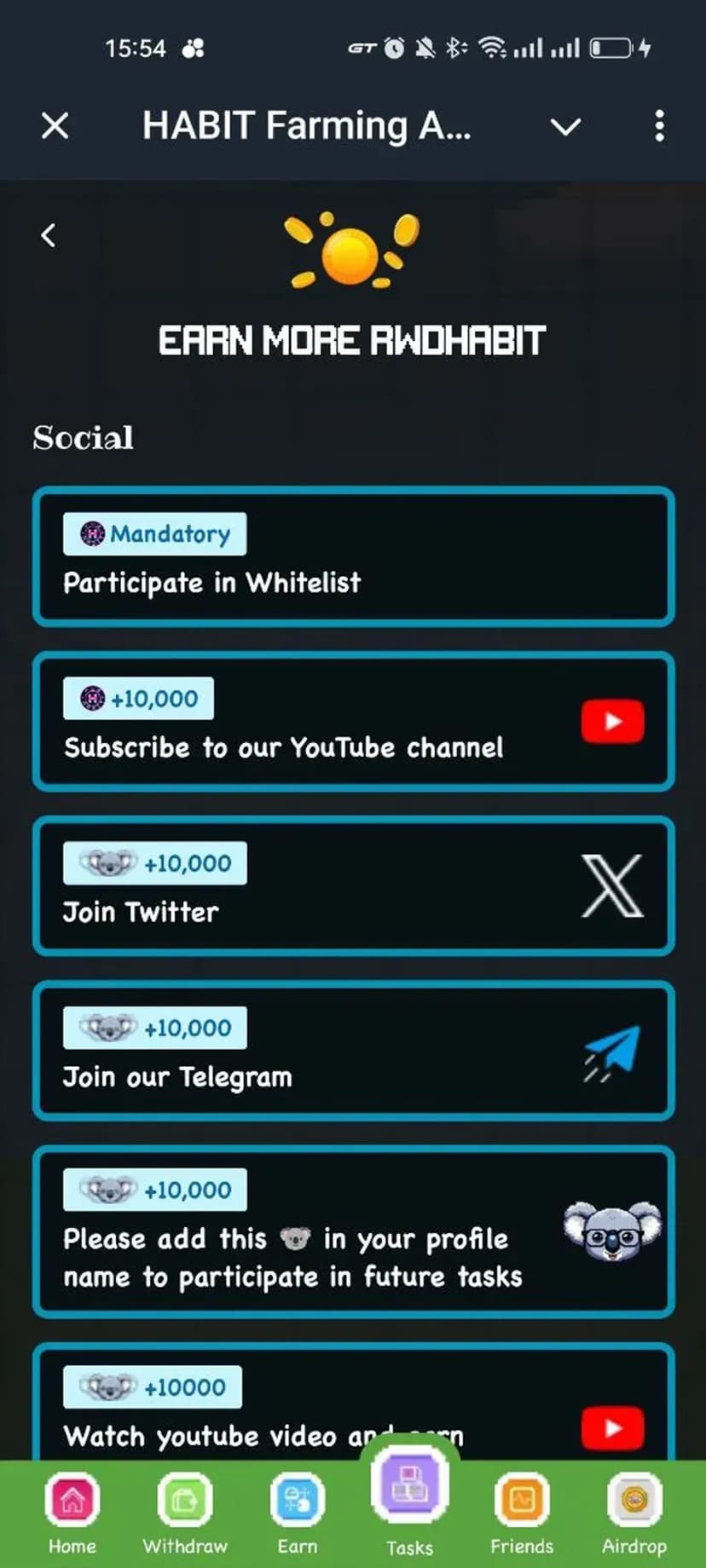 - Автоматический майнинг rwdHABIT с опцией ручного ускорения для увеличения дохода.