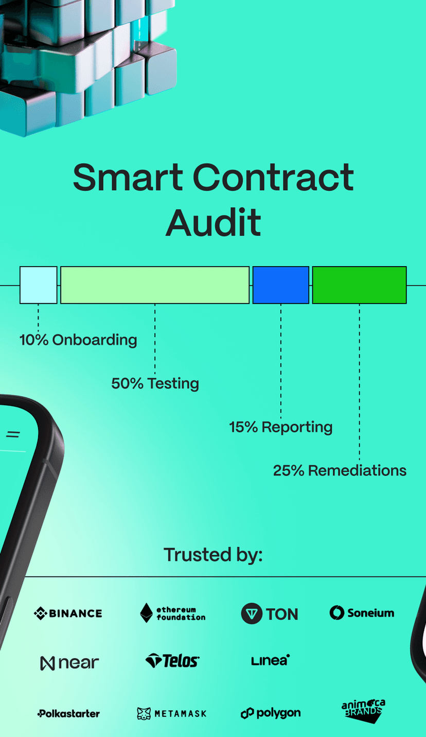 - Этапы проверки: анализ исходного кода, автоматизированное и ручное тестирование (включая инвариантное тестирование и fuzzing), подготовка итогового отчёта с рекомендациями.