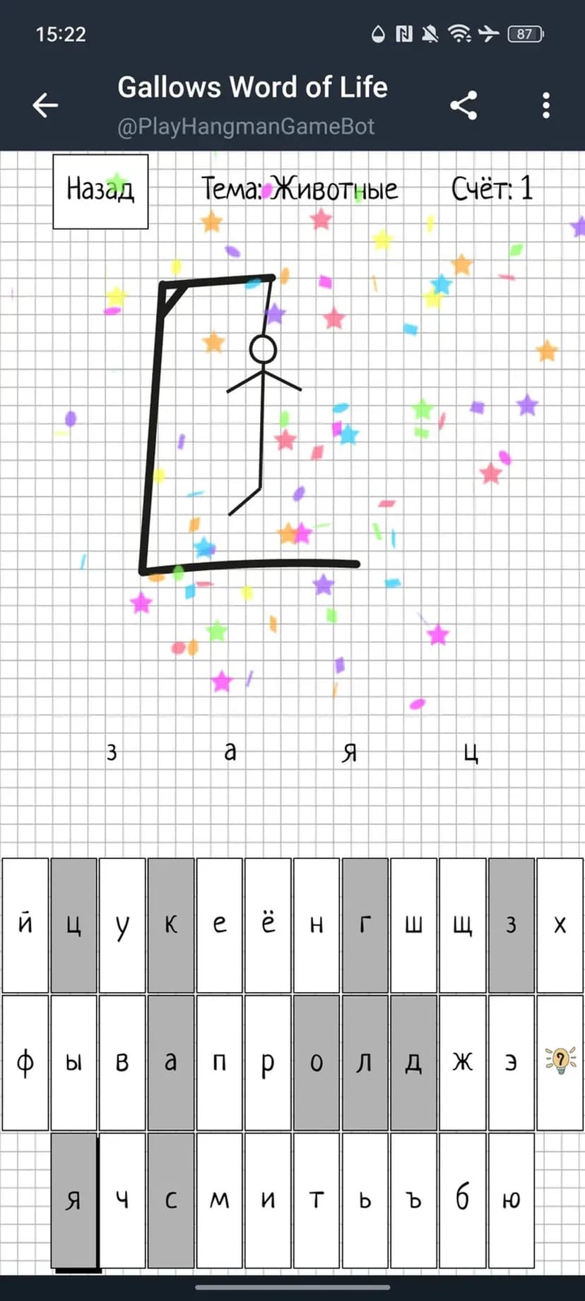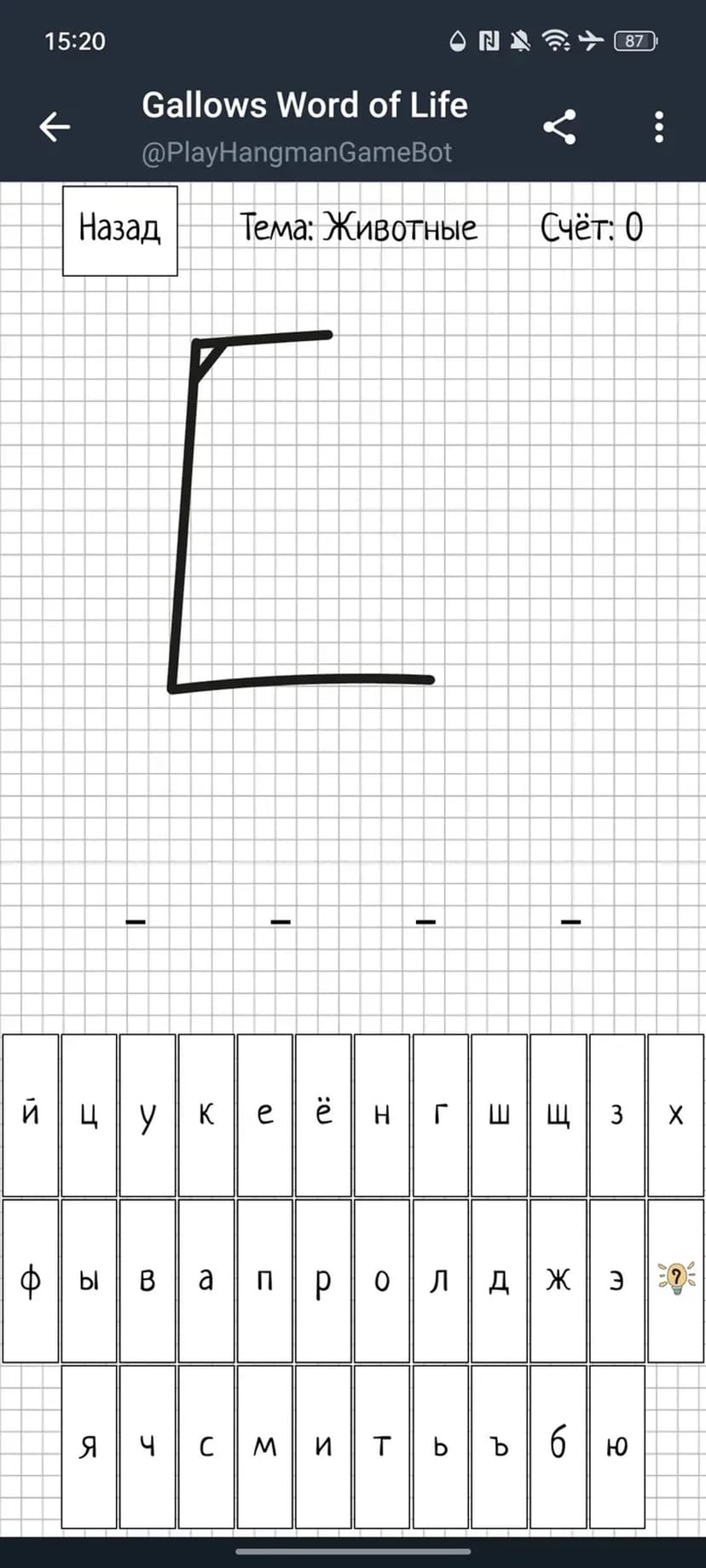 *Нажимая "Открыть в Telegram", вы перейдете к приложению Hangman Game в мессенджере Telegram