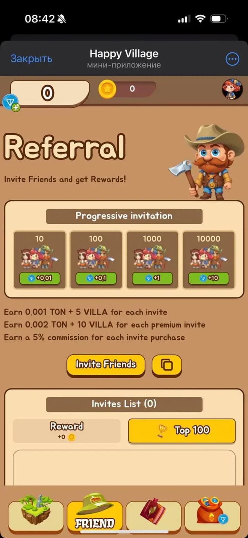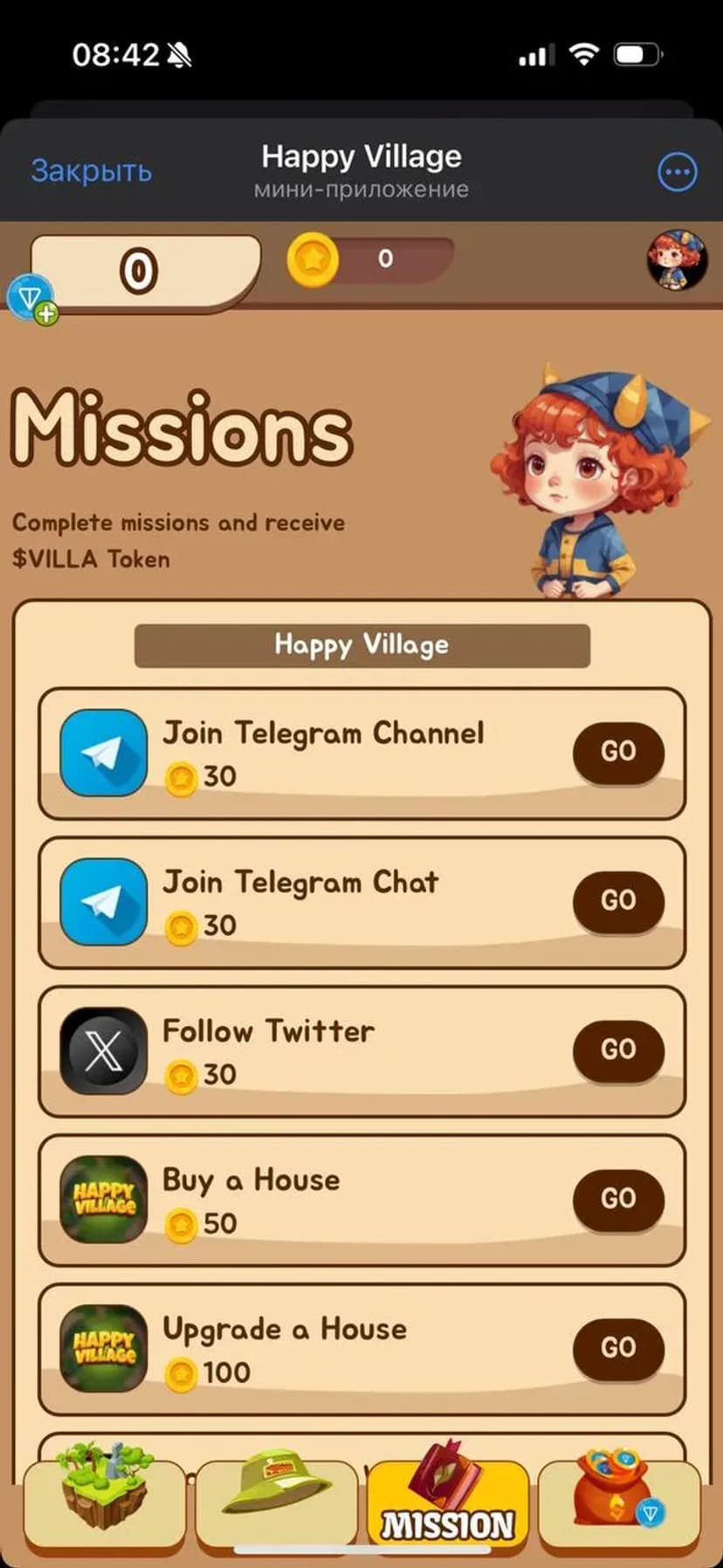 - Получение вознаграждений в $TON и внутриигровых $VILLA за достижения, участие в майнинге и выполнение заданий.