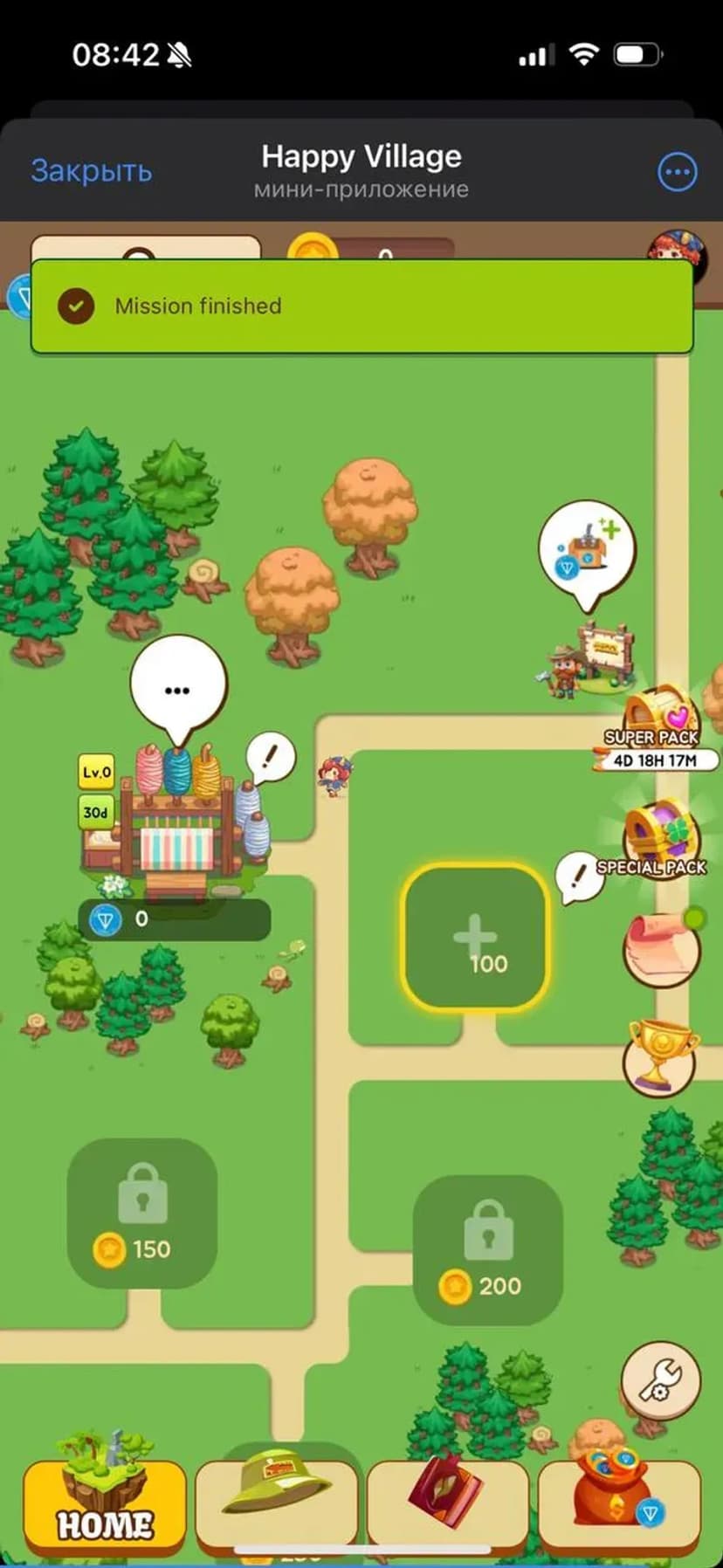 *Нажимая "Открыть в Telegram", вы перейдете к приложению Happy Village в мессенджере Telegram