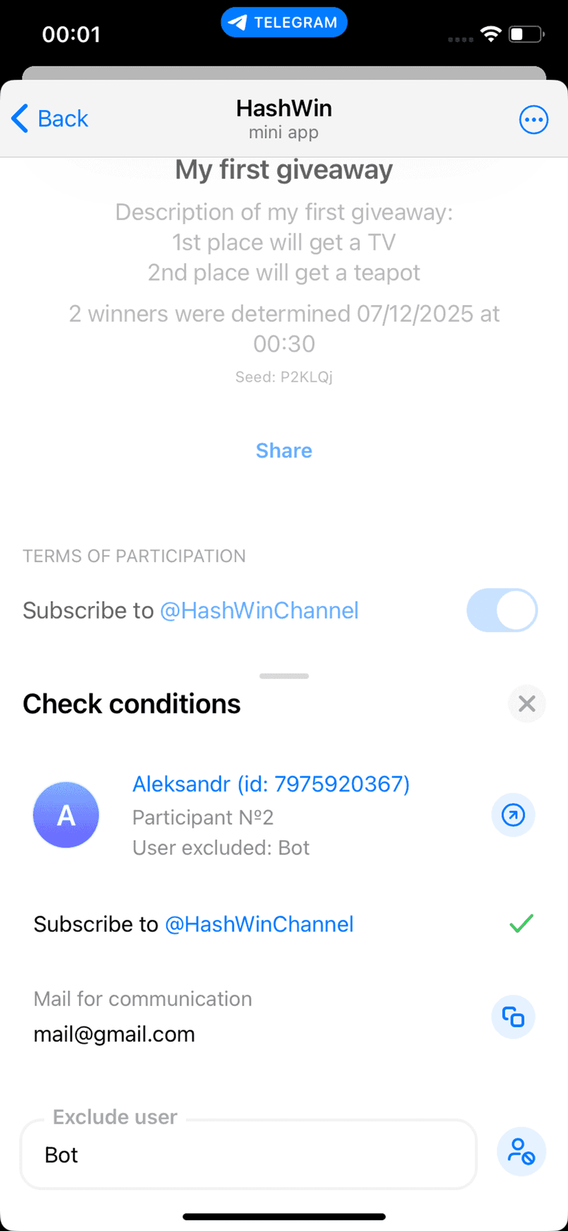 Честные розыгрыши в Telegram: автоматический выбор победителя на основе хеш‑алгоритма