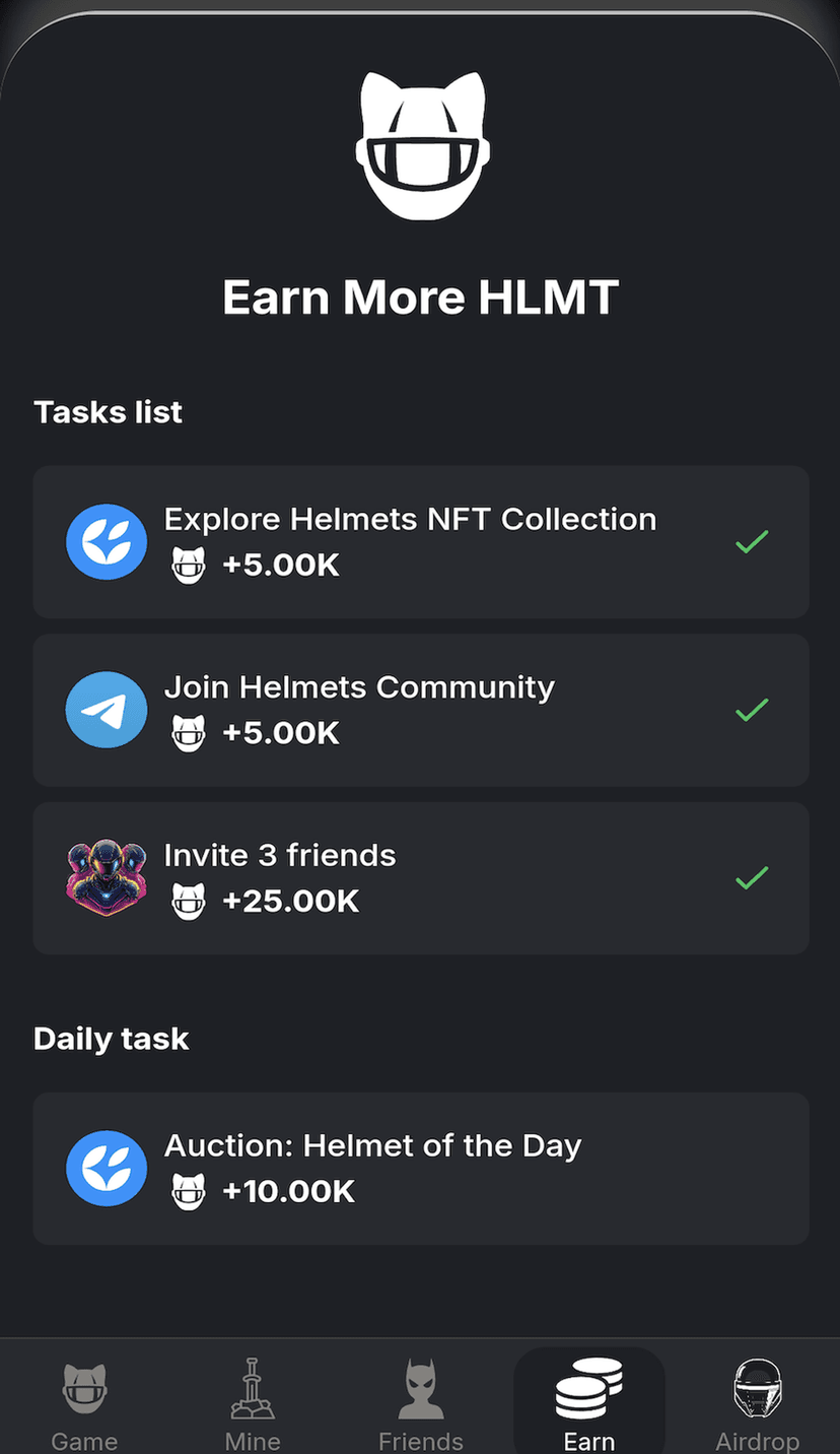 Советы: регулярно выполняйте задания, используйте NFT‑шлемы для повышения эффективности, улучшайте производство и приглашайте друзей для получения дополнительных вознаграждений.