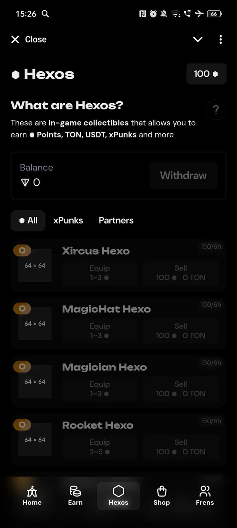 Hexos — play-to-earn сервис с комьюнити-квестами, интегрированный в экосистему TON. Пользователи выполняют задания и участвуют в игровых активностях, собирают предметы Hexos для увеличения игровых и фарминговых очков. За прогресс начисляются очки и реальные цифровые вознаграждения: криптовалюта TON, USDT, NFT и другие активы.