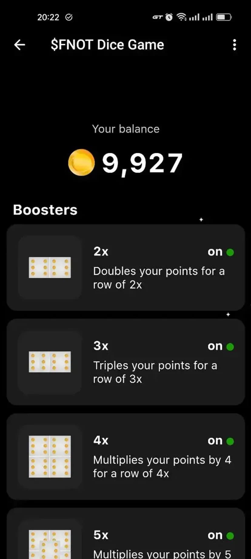 Бросок кубика: зарабатывай очки и отслеживай баланс в токене $FNOT