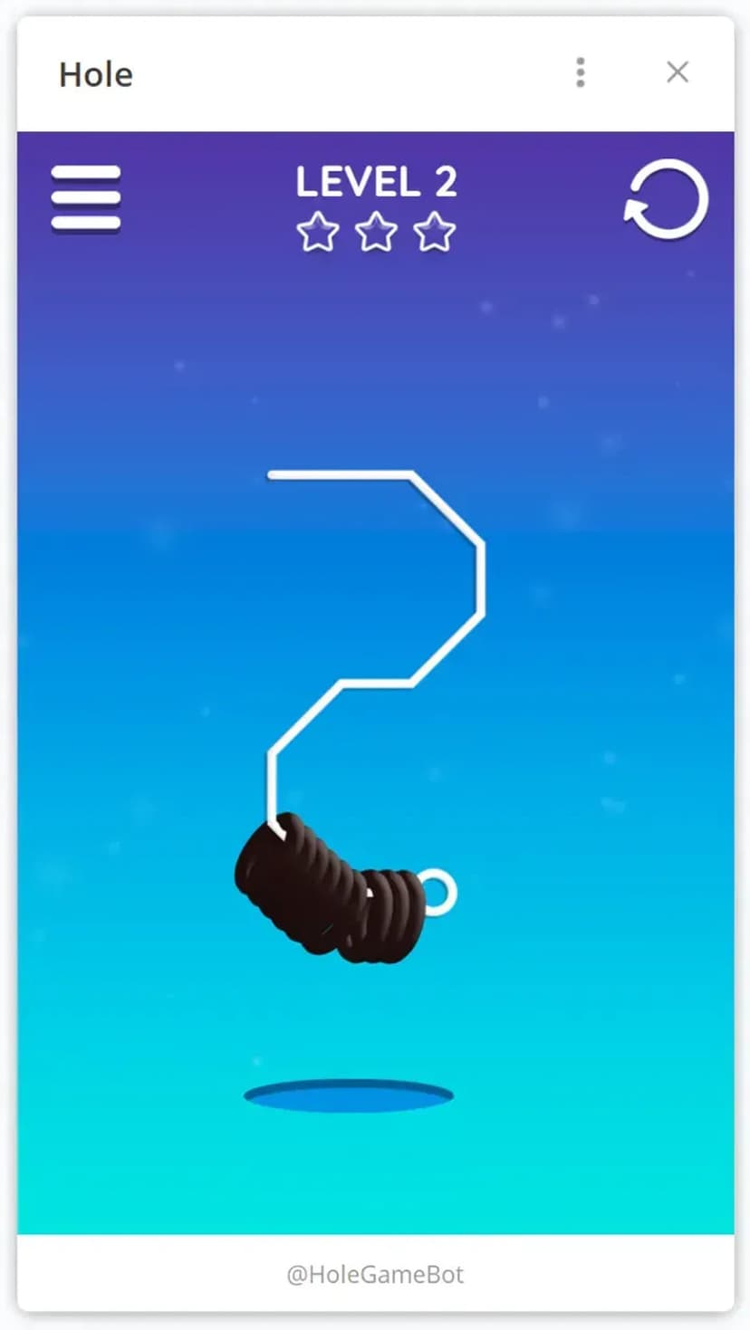Hole — мини-игра в Telegram, где игроку предстоит провести крючок с кольцом сквозь последовательность лабиринтов и препятствий, избегая столкновений со стенами и ловушками.