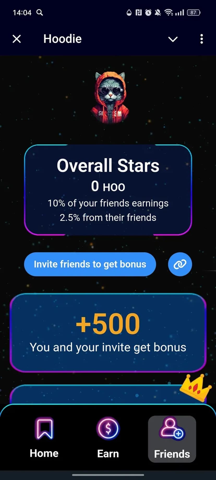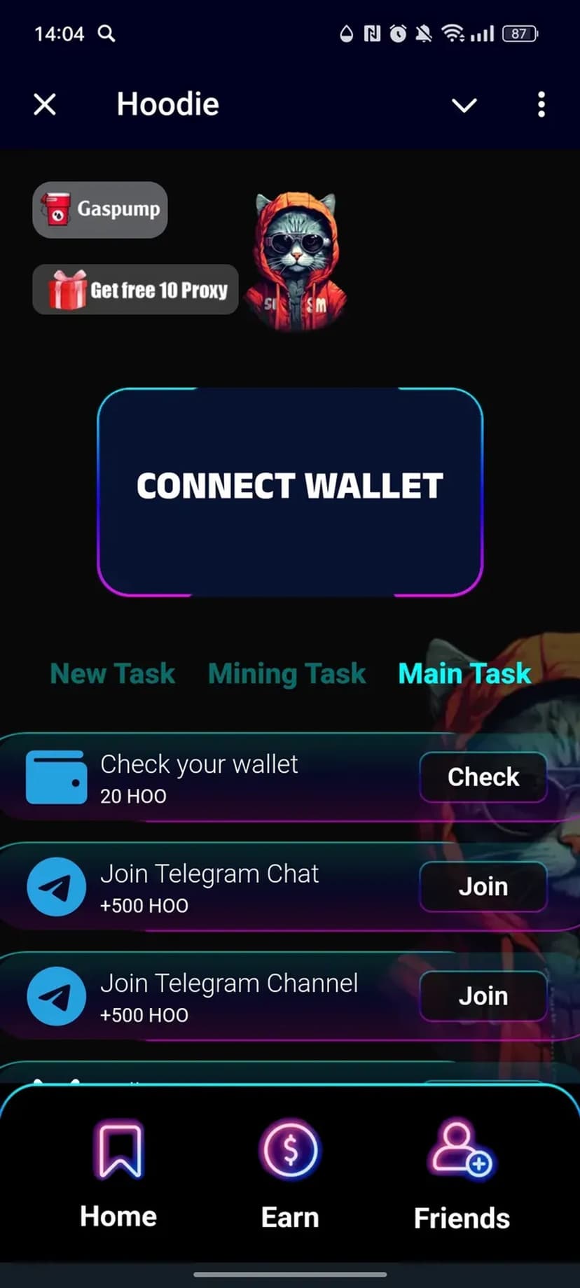 Hoodie работает на блокчейне TON и позволяет зарабатывать криптовалюту за выполнение рекламных заданий и участие в игровых активностях прямо внутри Telegram без отдельной регистрации.