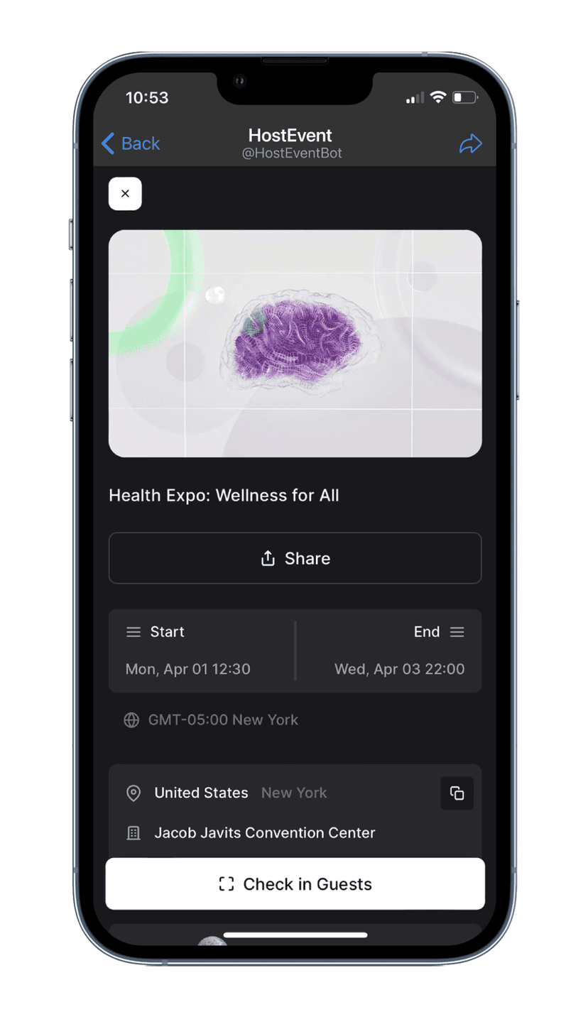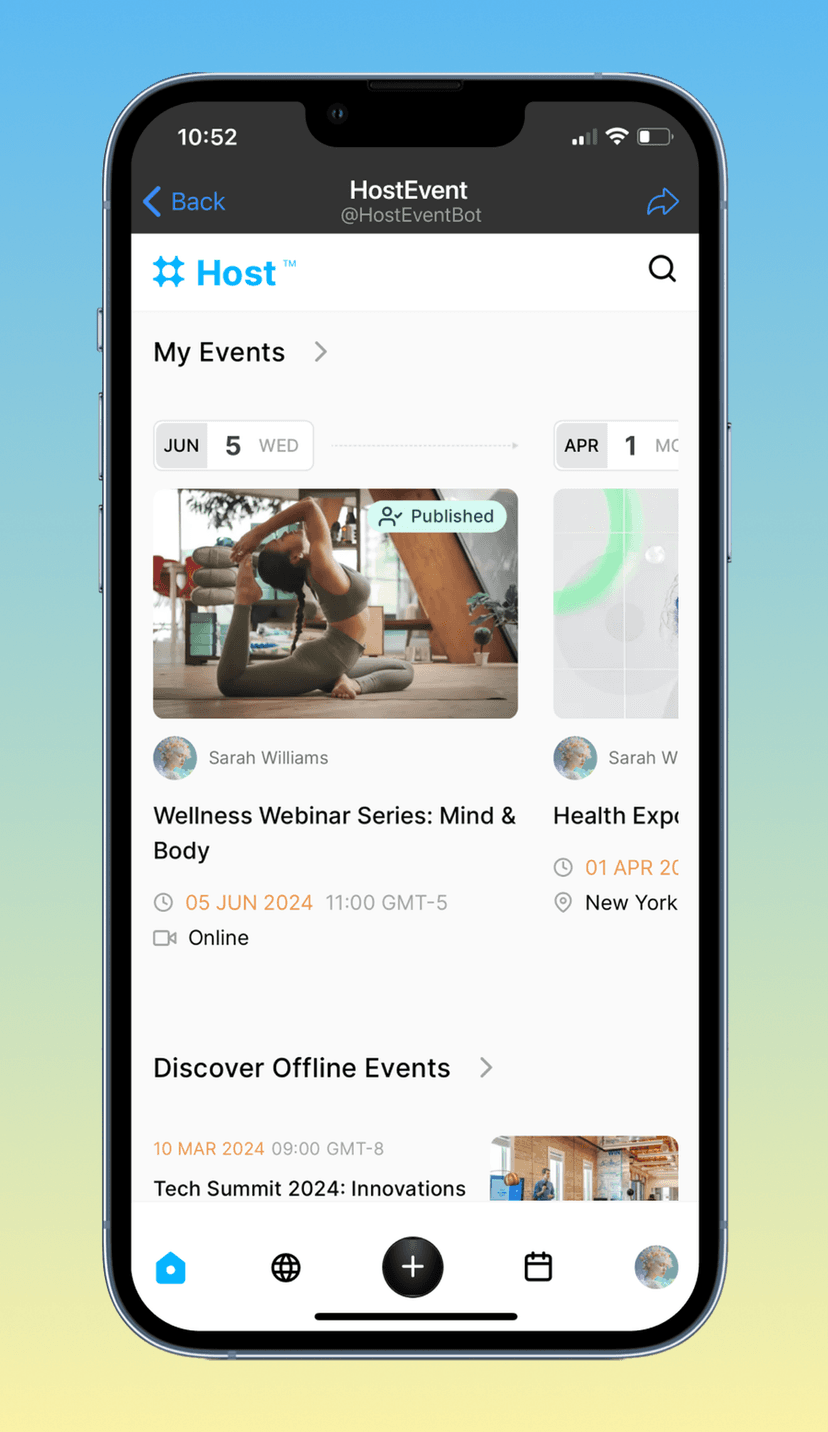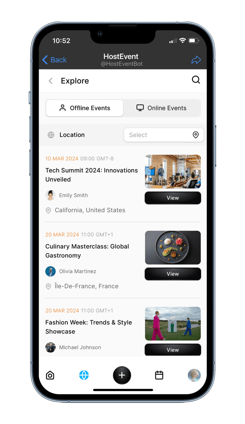 Host.tg — мини‑приложение на базе TON для быстрого создания и управления мероприятиями внутри Telegram. Регистрация проходит в один клик через аккаунт Telegram; внутри отсутствуют подписки и покупки.