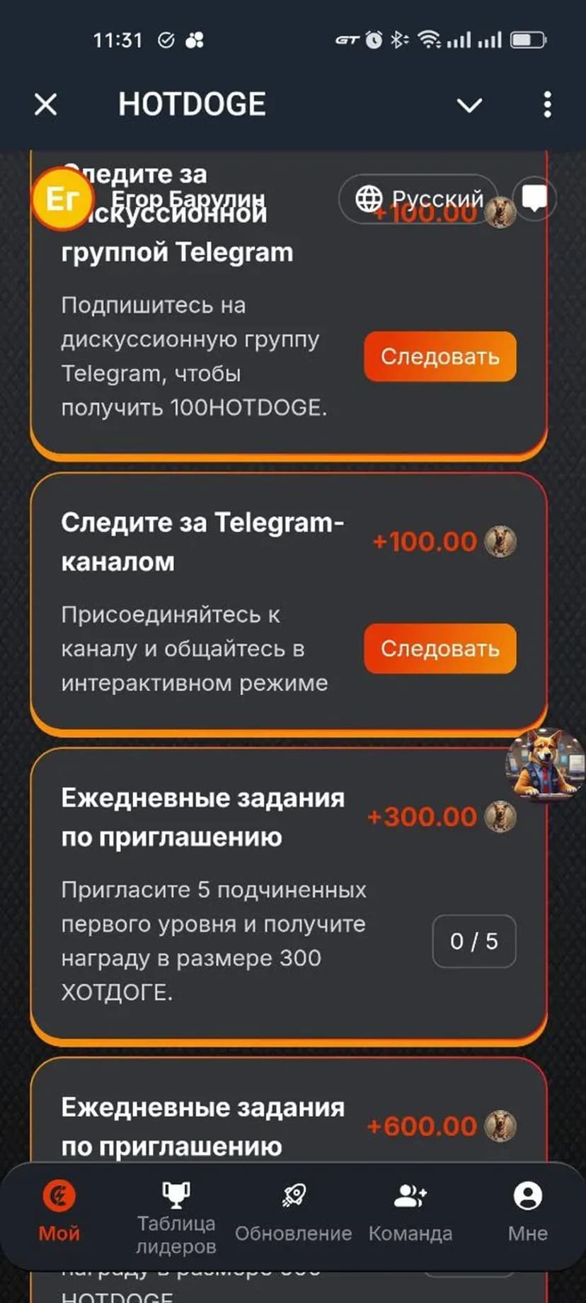 Командный майнинг HOTDOGE с ежедневными заданиями и распределением вознаграждений
