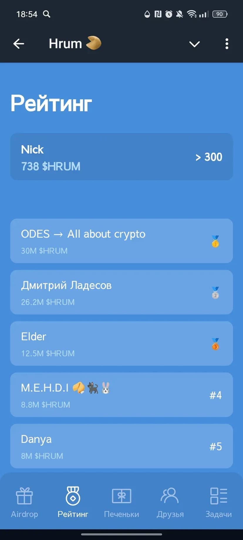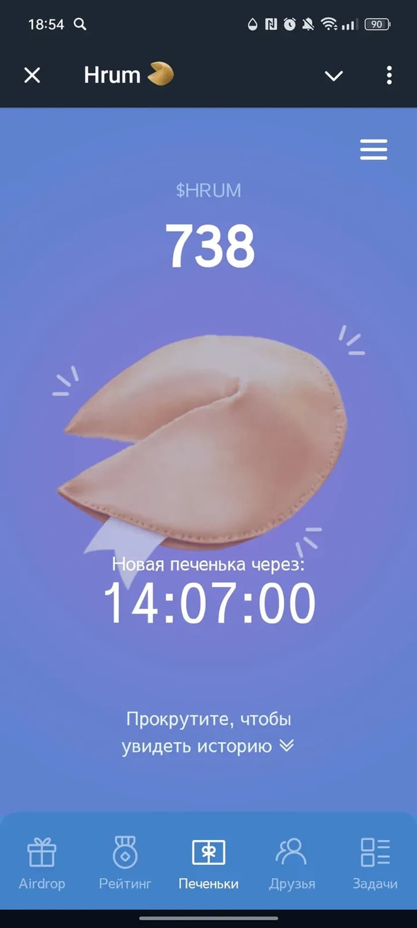 Hrum β ΠΊΡΠΈΠΏΡΠΎΠ²Π°Π»ΡΡΠ½ΡΠΉ ΡΠ΅ΡΠ²ΠΈΡ Π² Telegram, Π³Π΄Π΅ ΠΏΠΎΠ»ΡΠ·ΠΎΠ²Π°ΡΠ΅Π»ΠΈ Π΅ΠΆΠ΅Π΄Π½Π΅Π²Π½ΠΎ ΠΏΠΎΠ»ΡΡΠ°ΡΡ ΡΠΎΠΊΠ΅Π½Ρ $HRUM Π·Π° ΠΏΡΠ΅Π΄ΡΠΊΠ°Π·Π°Π½ΠΈΡ Π² ΡΠΎΡΠΌΠ°ΡΠ΅ fortune cookies, Π²ΡΠΏΠΎΠ»Π½Π΅Π½ΠΈΠ΅ ΠΏΡΠΎΡΡΡΡ Π·Π°Π΄Π°Π½ΠΈΠΉ ΠΈ ΠΏΡΠΈΠ³Π»Π°ΡΠ΅Π½ΠΈΠ΅ Π΄ΡΡΠ·Π΅ΠΉ. ΠΡΠΎΠ΅ΠΊΡ ΠΎΡΠ½ΠΎΠ²Π°Π½ Π½Π° Π±Π»ΠΎΠΊΡΠ΅ΠΉΠ½Π΅ TON ΠΈ ΠΎΡΠΈΠ΅Π½ΡΠΈΡΠΎΠ²Π°Π½ Π½Π° Π½Π°ΠΊΠΎΠΏΠ»Π΅Π½ΠΈΠ΅ ΡΠΎΠΊΠ΅Π½ΠΎΠ² Π΄ΠΎ ΠΈΡ Π±ΡΠ΄ΡΡΠ΅Π³ΠΎ Π»ΠΈΡΡΠΈΠ½Π³Π° ΠΈ Π²ΠΎΠ·ΠΌΠΎΠΆΠ½ΠΎΠ³ΠΎ airdrop.
