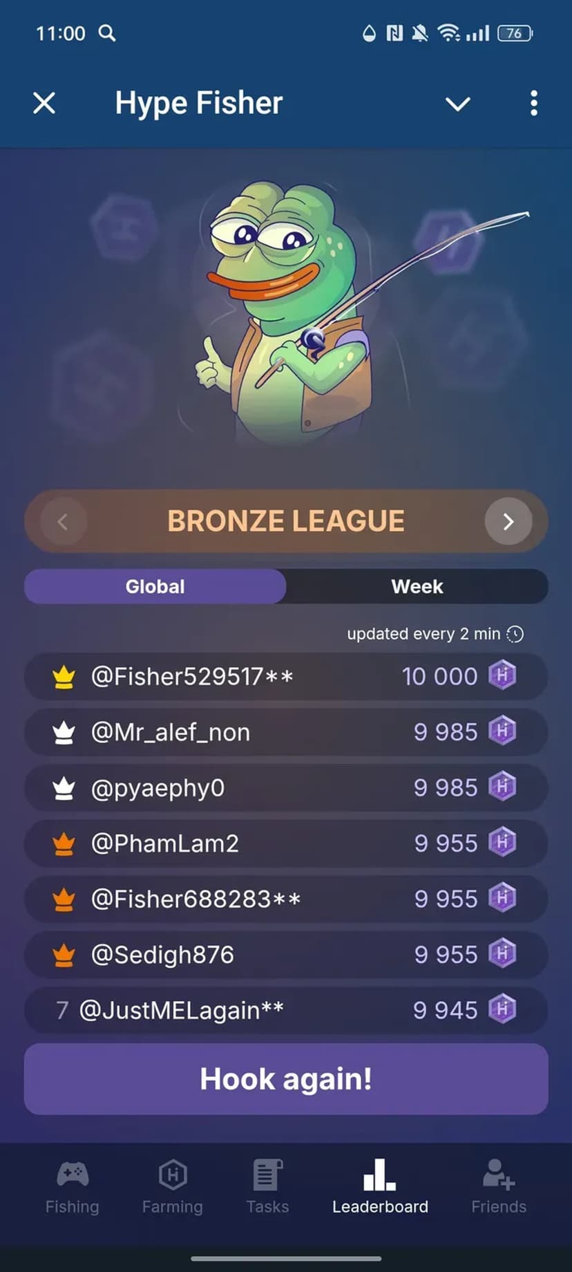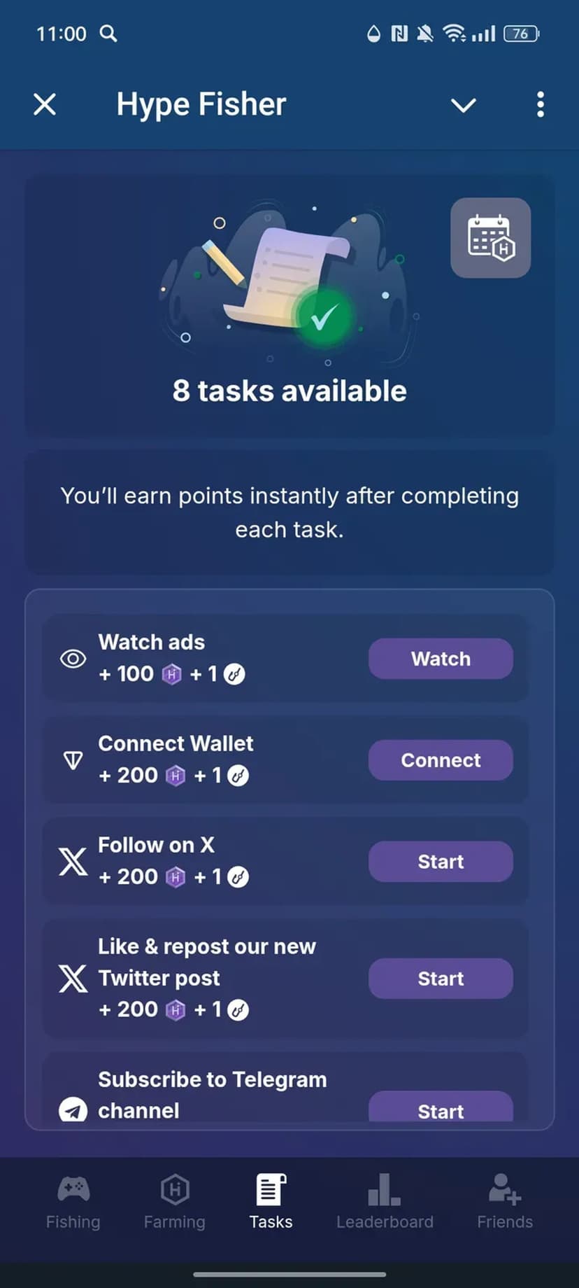 Hype Fisher — игровой бот, где вы в роли рыболова собираете цифровую «добычу», выполняя различные миссии, привлекая друзей и сражаясь в турнирах за виртуальные награды и внутриигровую криптовалюту $HYPE.