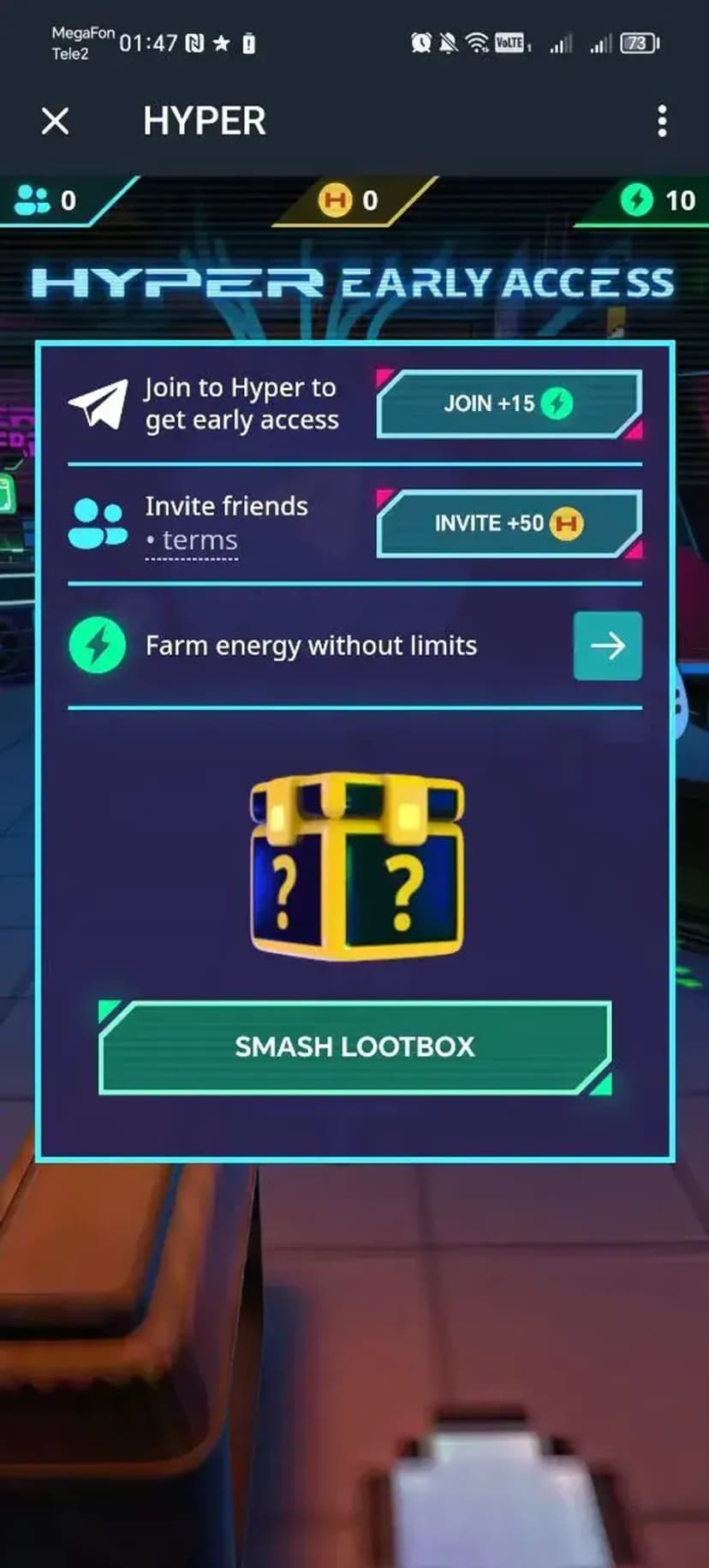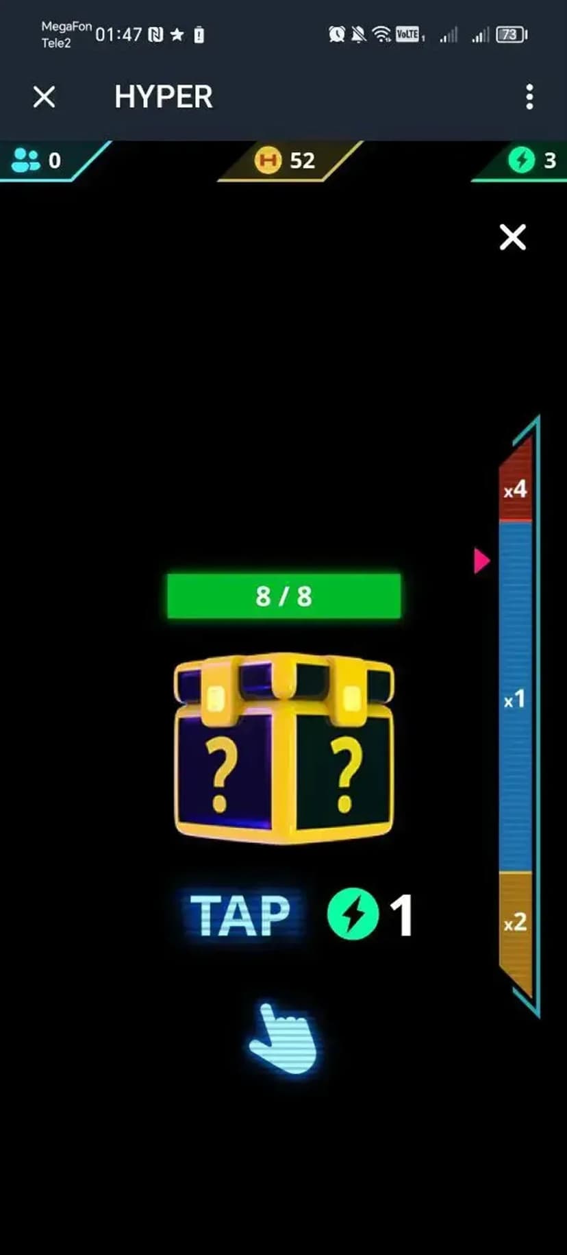 HYPER — геймифицированный сервис для заработка внутриигровой валюты Hypercoin через регулярные игровые действия и активность. Приложение показывает прогресс в интерактивном интерфейсе и делает акцент на соревновательности.