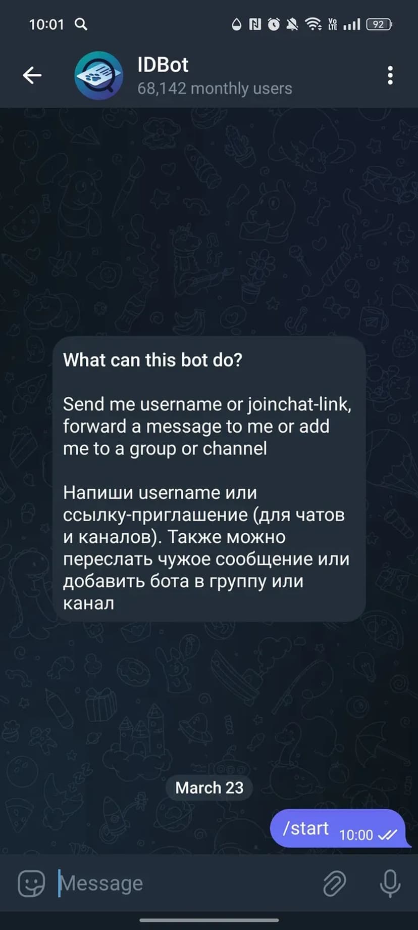 Мгновенный поиск ID пользователей, групп и каналов в Telegram