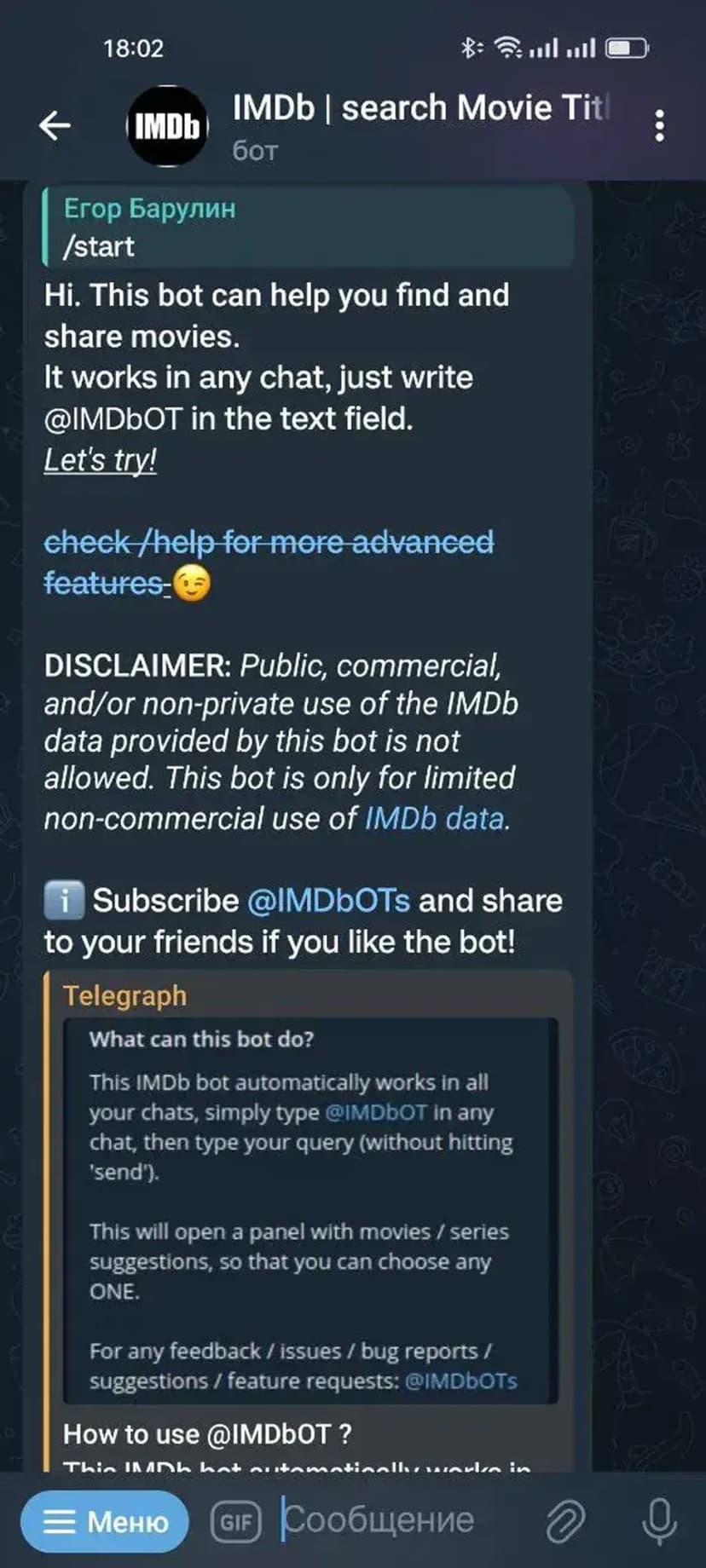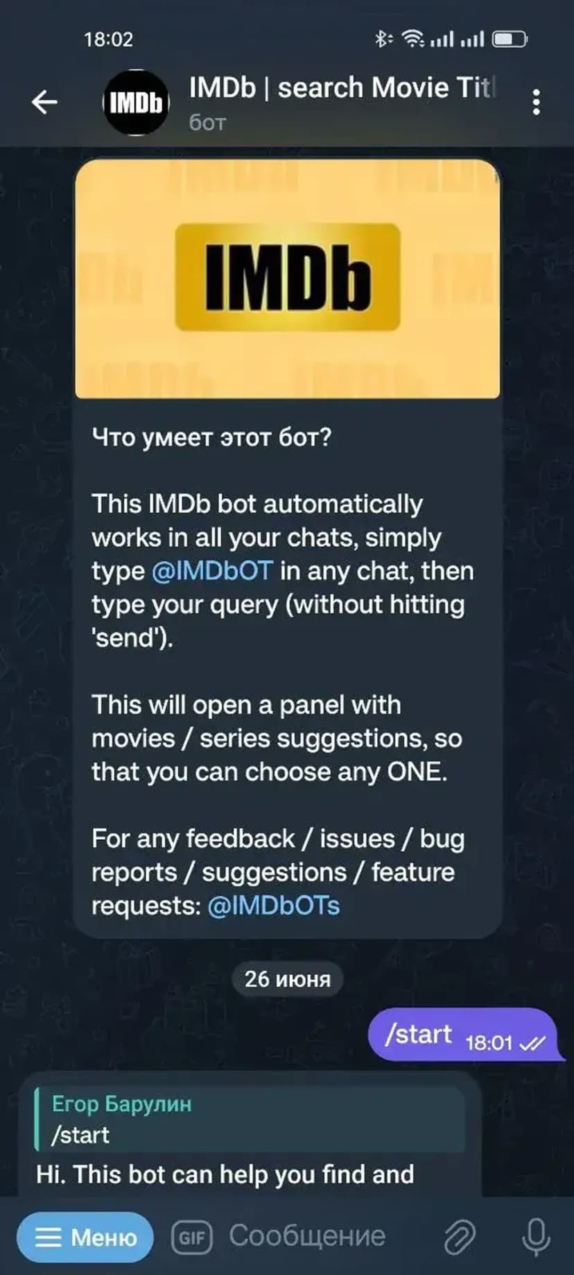 *Нажимая "Открыть в Telegram", вы перейдете к приложению IMDb - search Movie Titles, TVEpisodes, Celebs в мессенджере Telegram