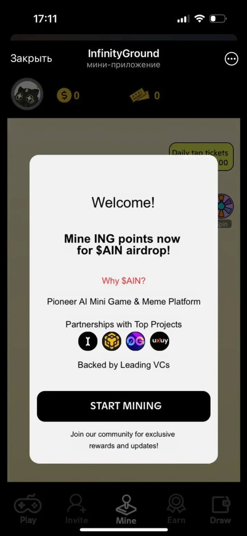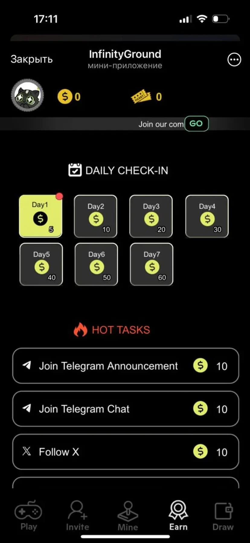 *Нажимая "Открыть в Telegram", вы перейдете к приложению InfinityGround в мессенджере Telegram