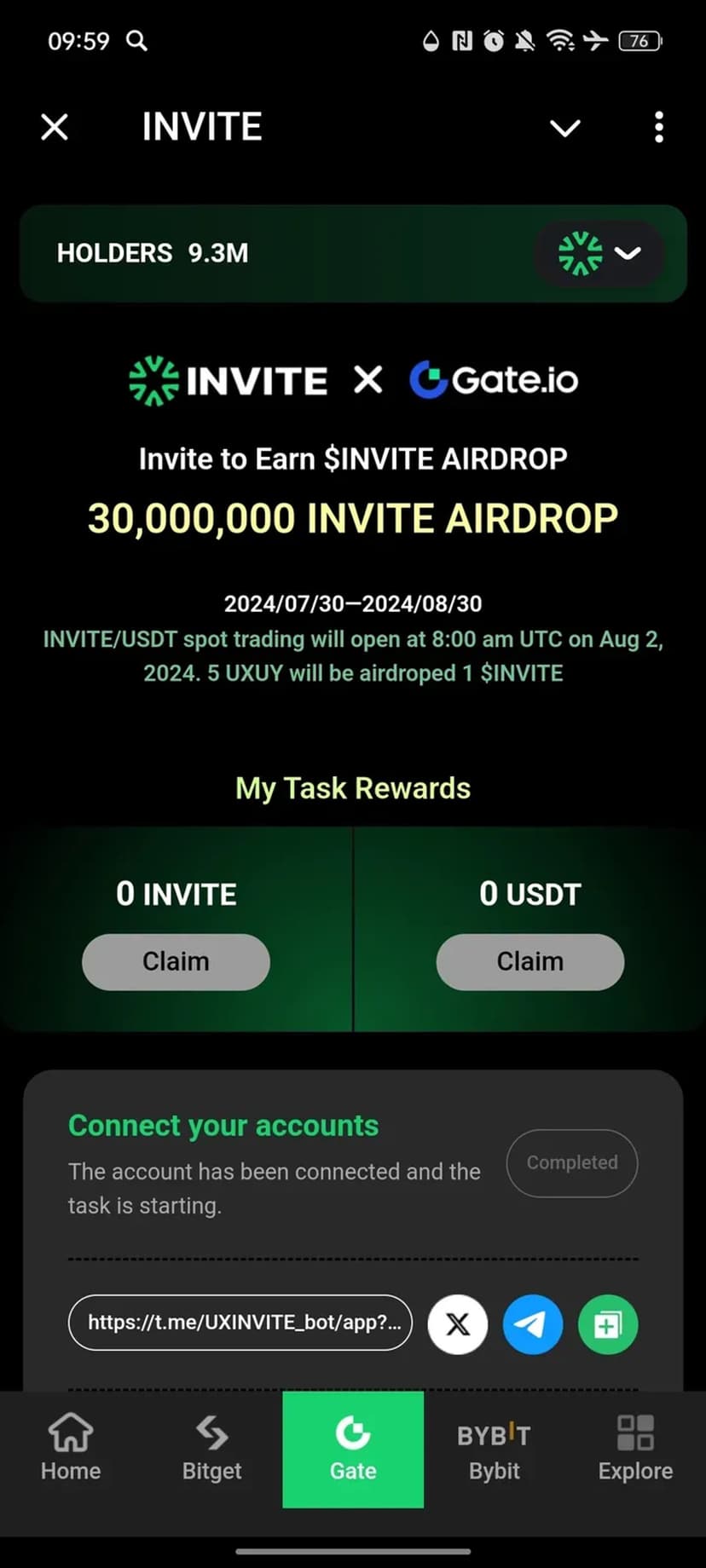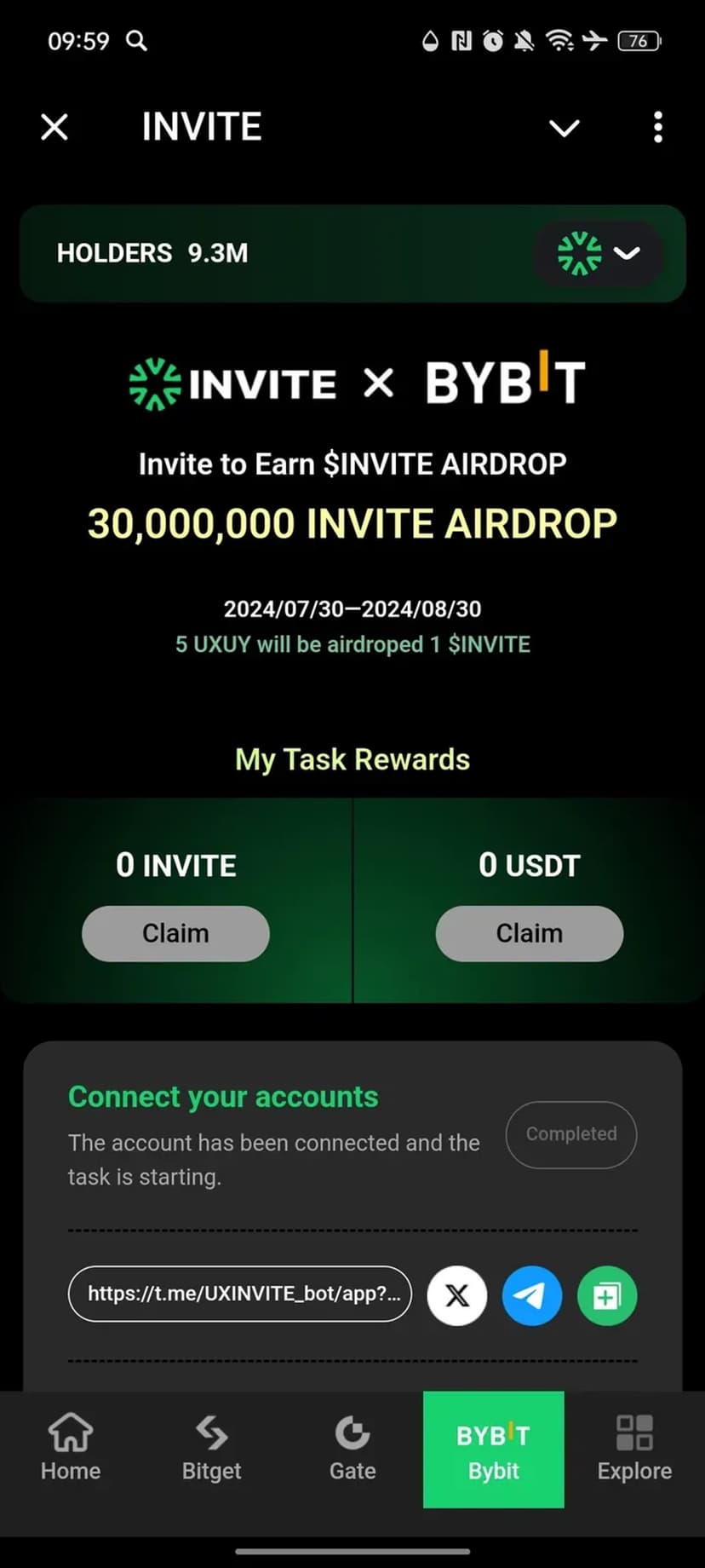 - Автоматическое начисление $INVITE за социальную активность и выполнение заданий
