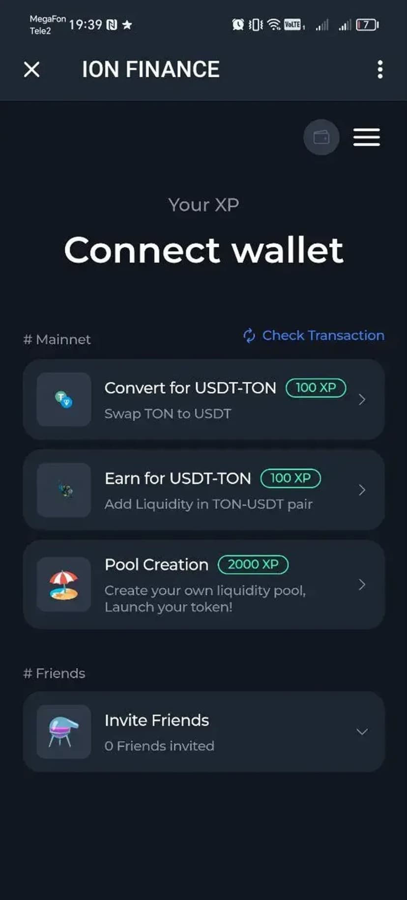 ION FINANCE — децентрализованная биржа (DEX), работающая внутри Telegram и ориентированная на пользователей The Open Network (TON). Платформа обеспечивает прямой обмен токенов, возможность внесения ликвидности и участие в базовых DeFi-инструментах без отдельной регистрации и установки дополнительного ПО.