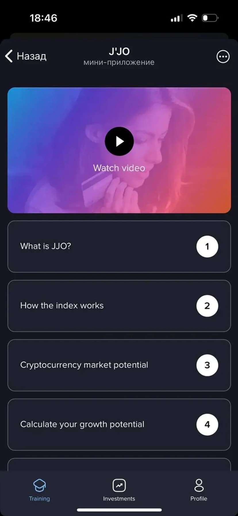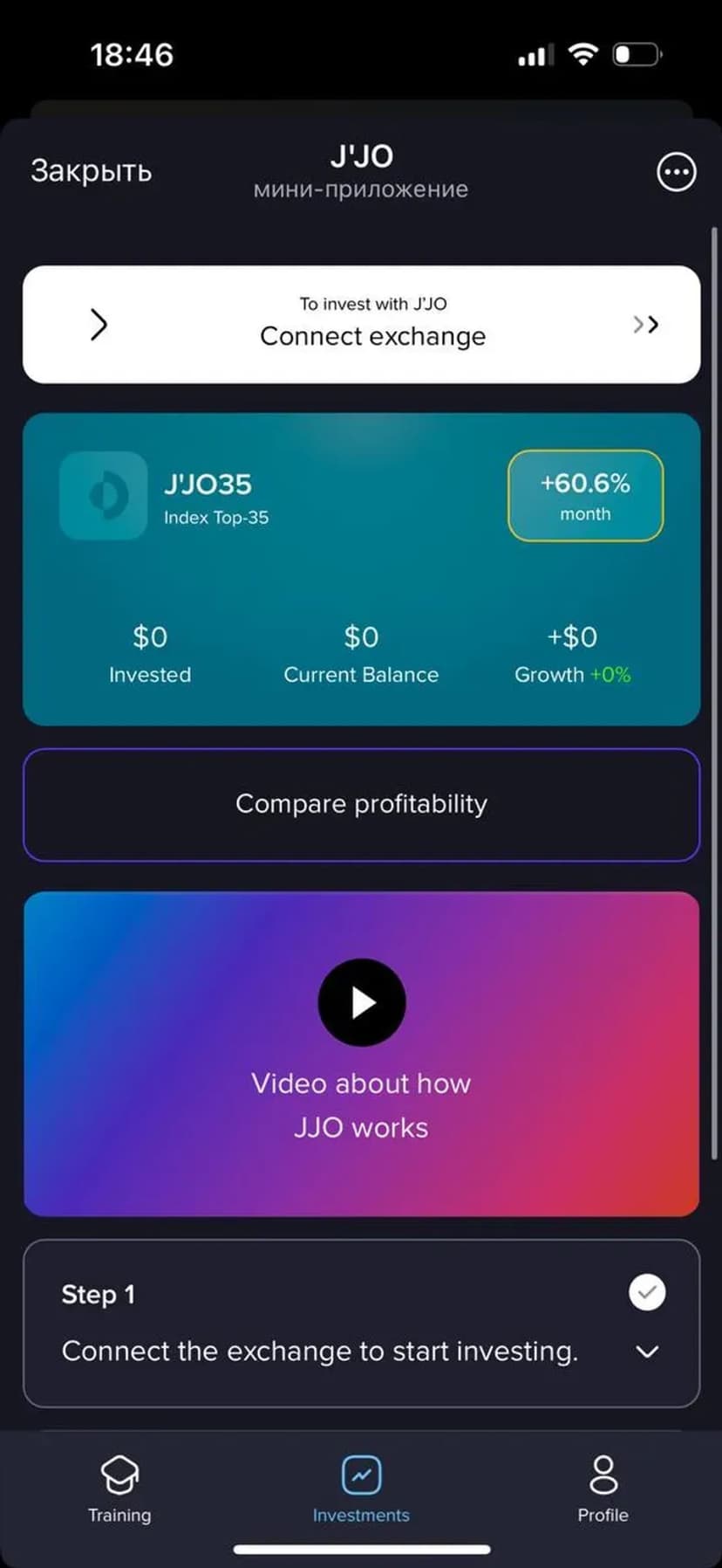 J'JO — мини‑решение для инвестиций в криптовалюты, созданное для пользователей, которые хотят вкладывать без глубоких технических знаний. Сервис предлагает упрощённый подход: инвестирование и управление средствами выполняются в несколько кликов внутри мессенджера.