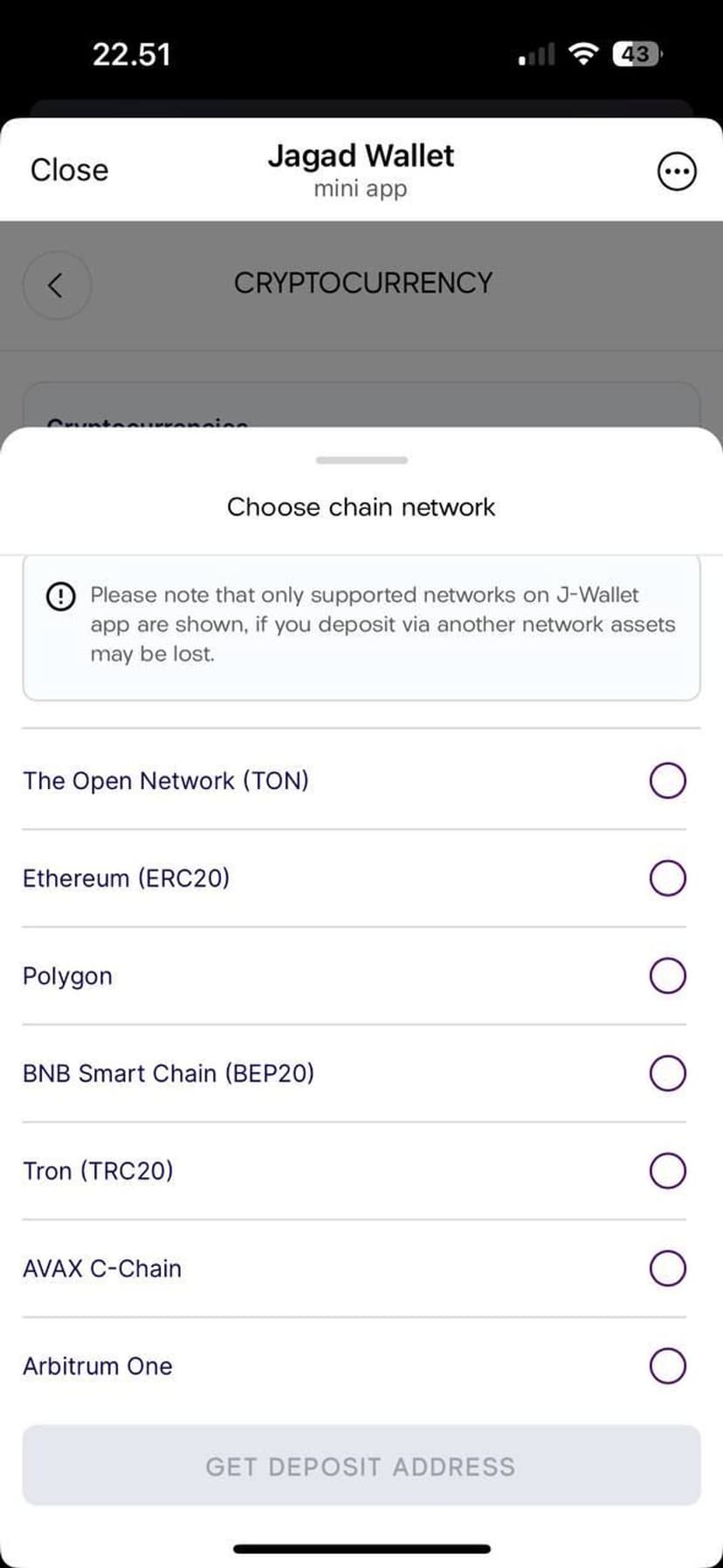 *Нажимая "Открыть в Telegram", вы перейдете к приложению J-Wallet (Jagad Wallet) в мессенджере Telegram