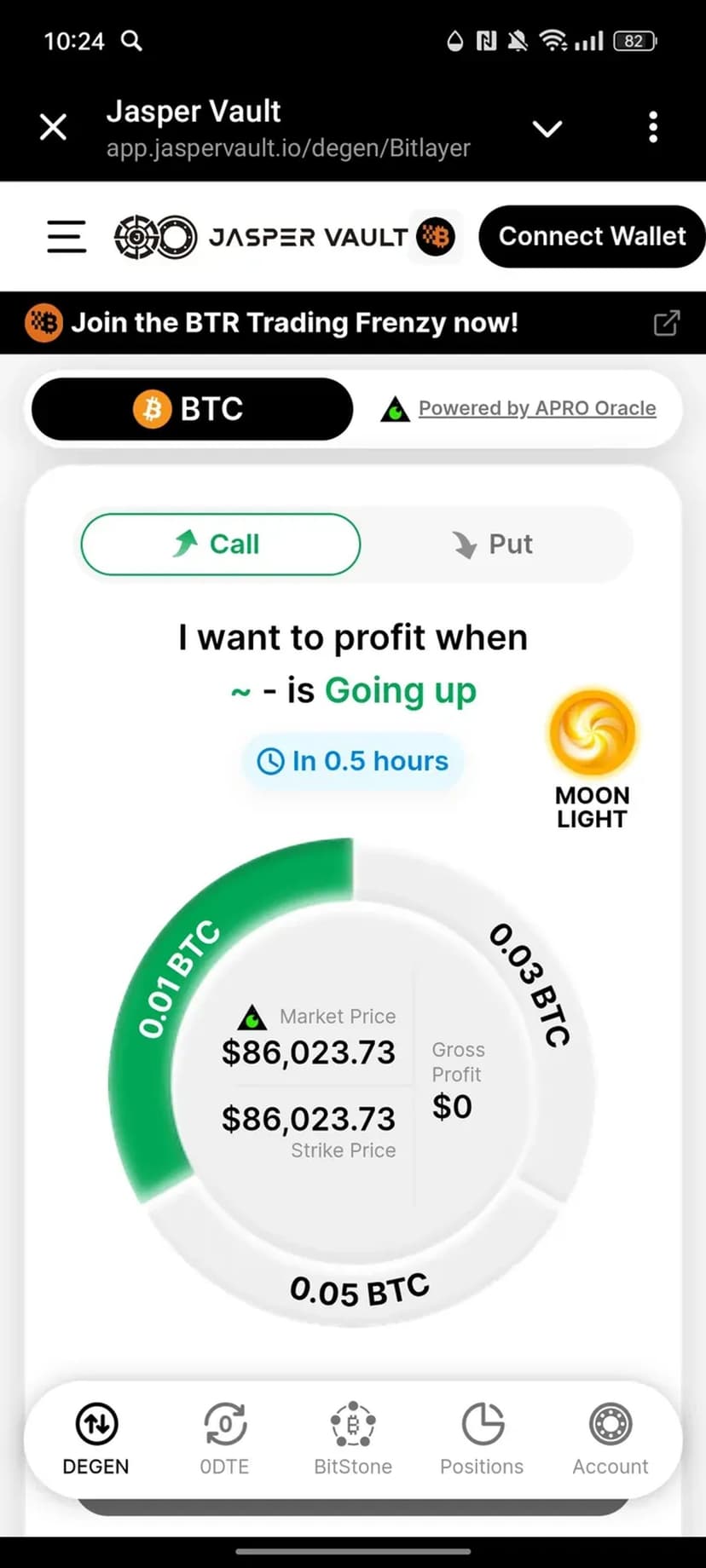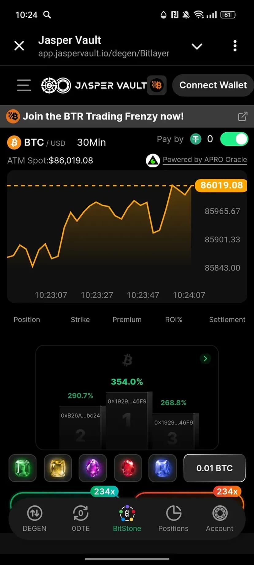 Jasper Vault Mini BTC — геймифицированный инструмент для торговли биткоин‑опционами, где пользователь сохраняет контроль над приватными ключами и активами. Позволяет делать прогнозы на рост или падение BTC и получать выплаты с высоким левереджем при отсутствии риска ликвидации позиции.