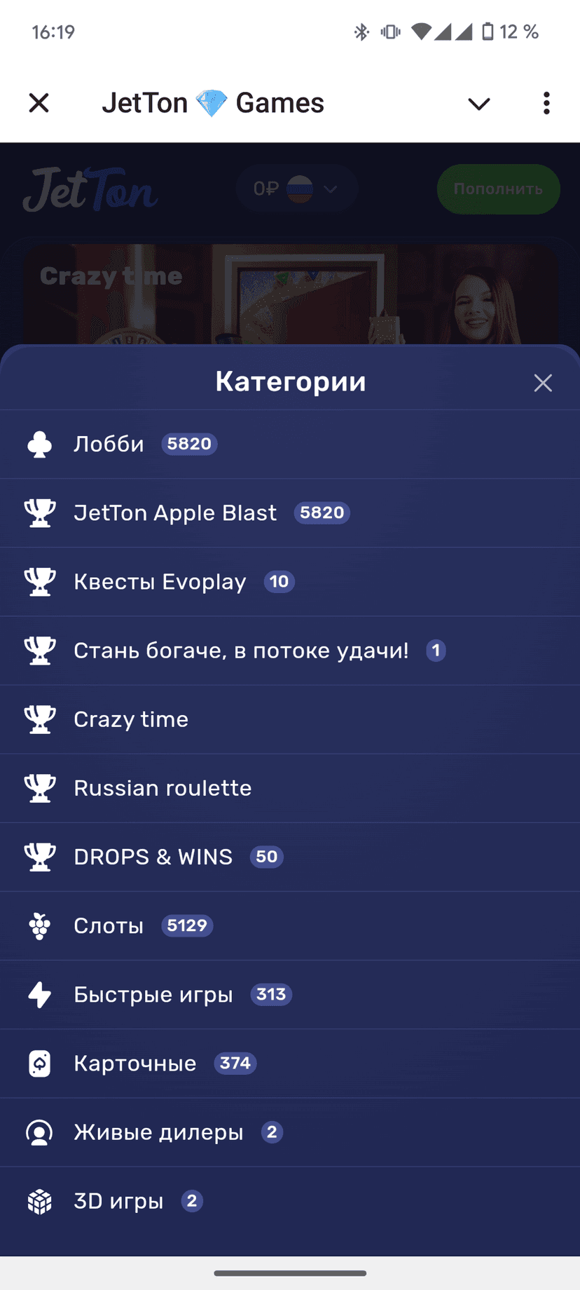 - Игры: слоты, карточные игры, рулетки, игры с живыми дилерами и другие развлечения — в каталоге доступно около 5 тысяч игр; на главной странице есть поиск, фильтры и возможность случайного выбора.
