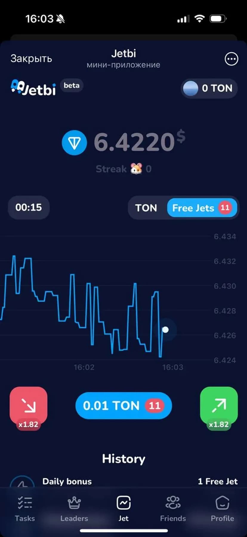 Jetbi — игра в формате Up or Down с короткими 15‑секундными раундами, где участники делают ставки на направление изменения курса выбранного актива.