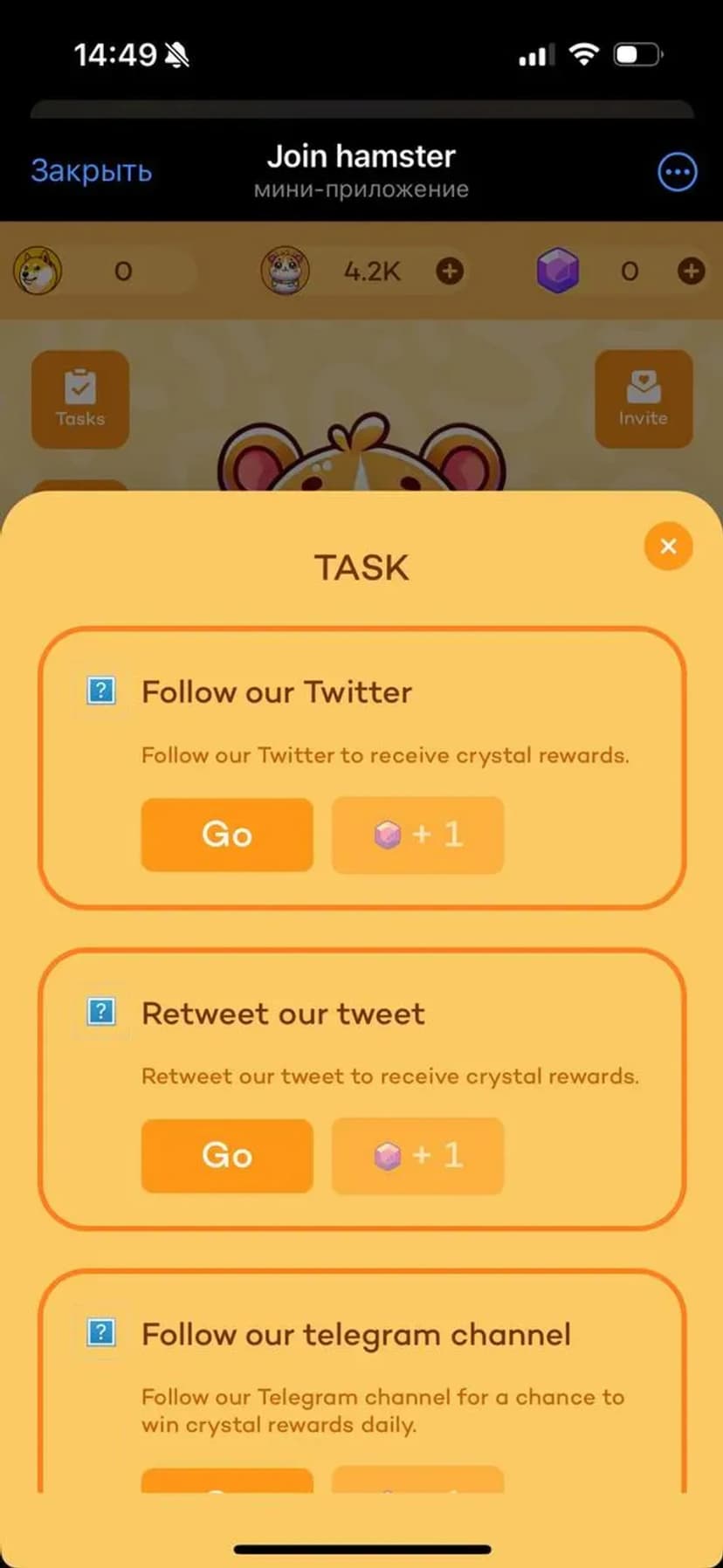 *Нажимая "Открыть в Telegram", вы перейдете к приложению Join hamster в мессенджере Telegram
