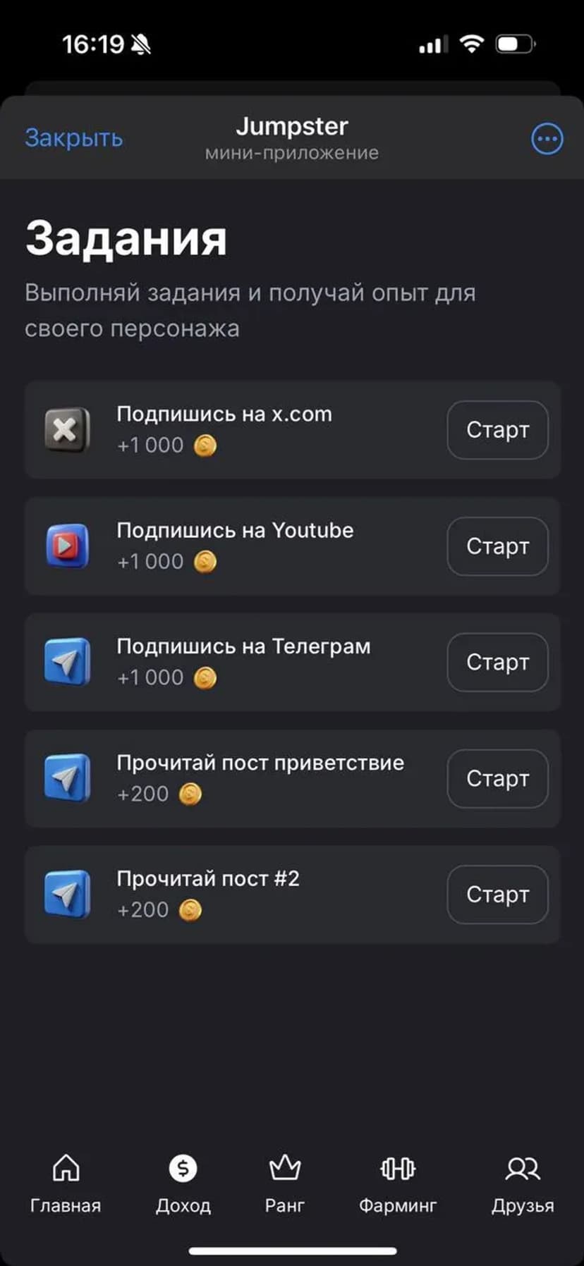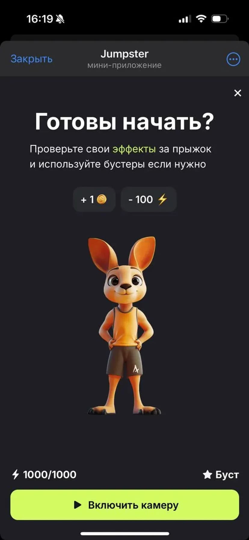 Jumpster — аркадная игра в Telegram, где вы выполняете прыжки, развиваете персонажа и зарабатываете внутриигровую валюту.