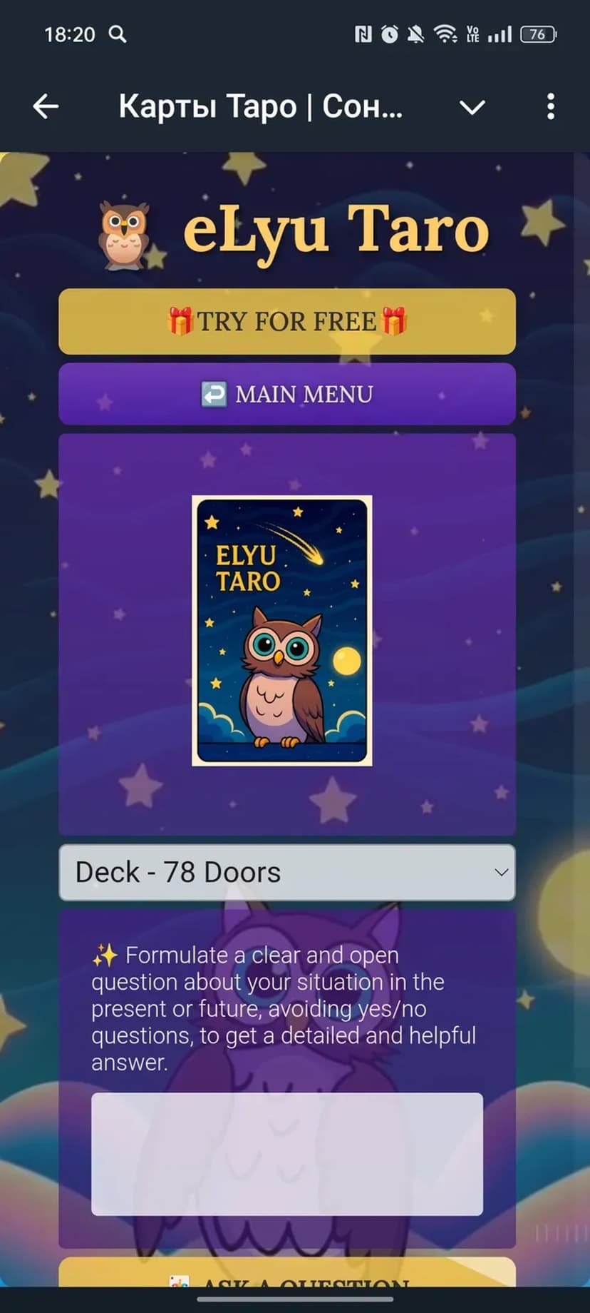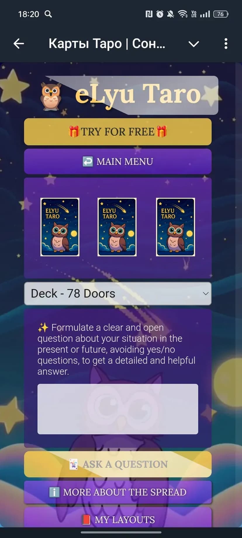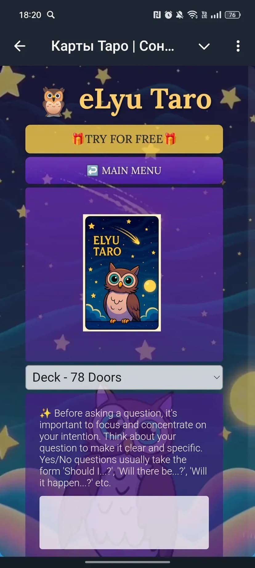 *Нажимая "Открыть в Telegram", вы перейдете к приложению Карты Таро | Сонник | Дневник Совы в мессенджере Telegram