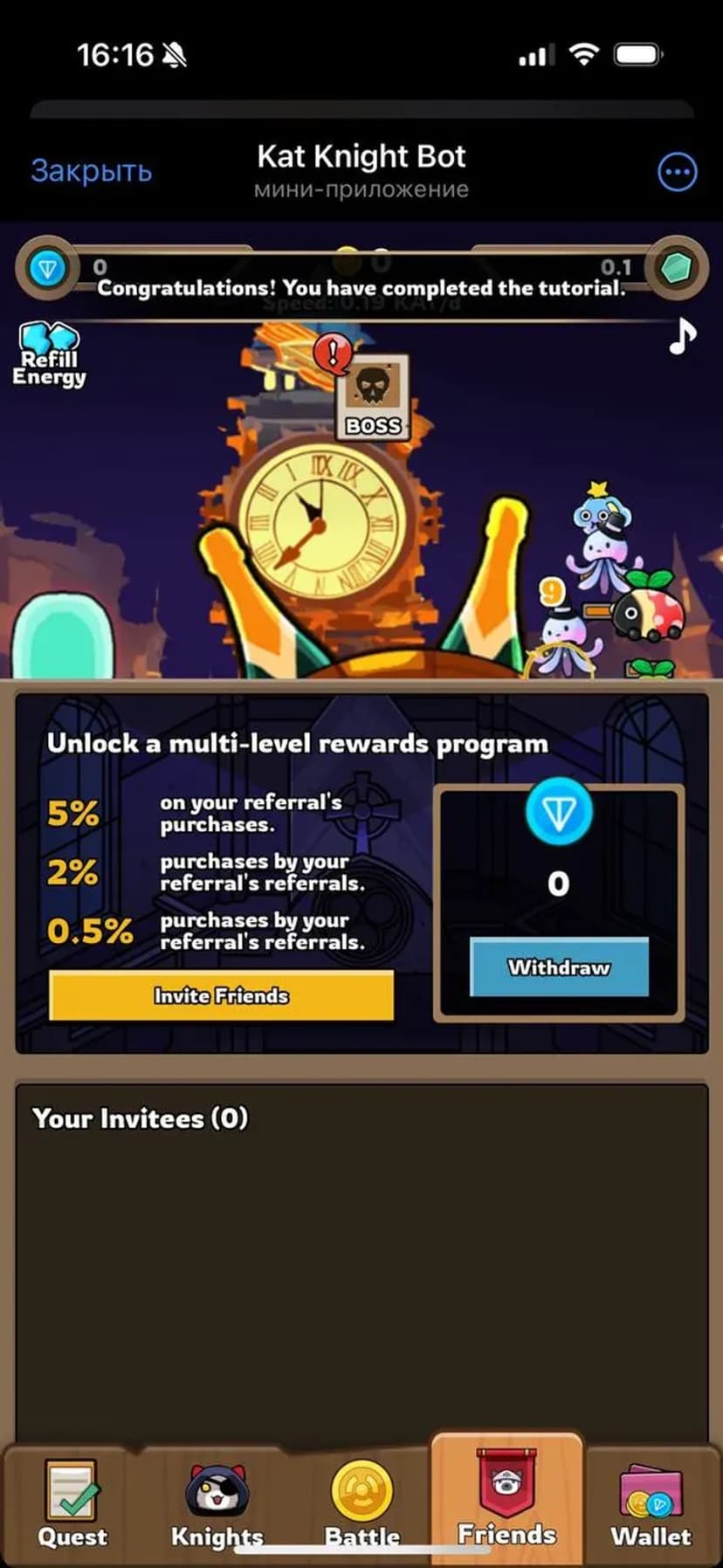 - Реферальная система: за привлечение других игроков начисляются дополнительные бонусы в TON.