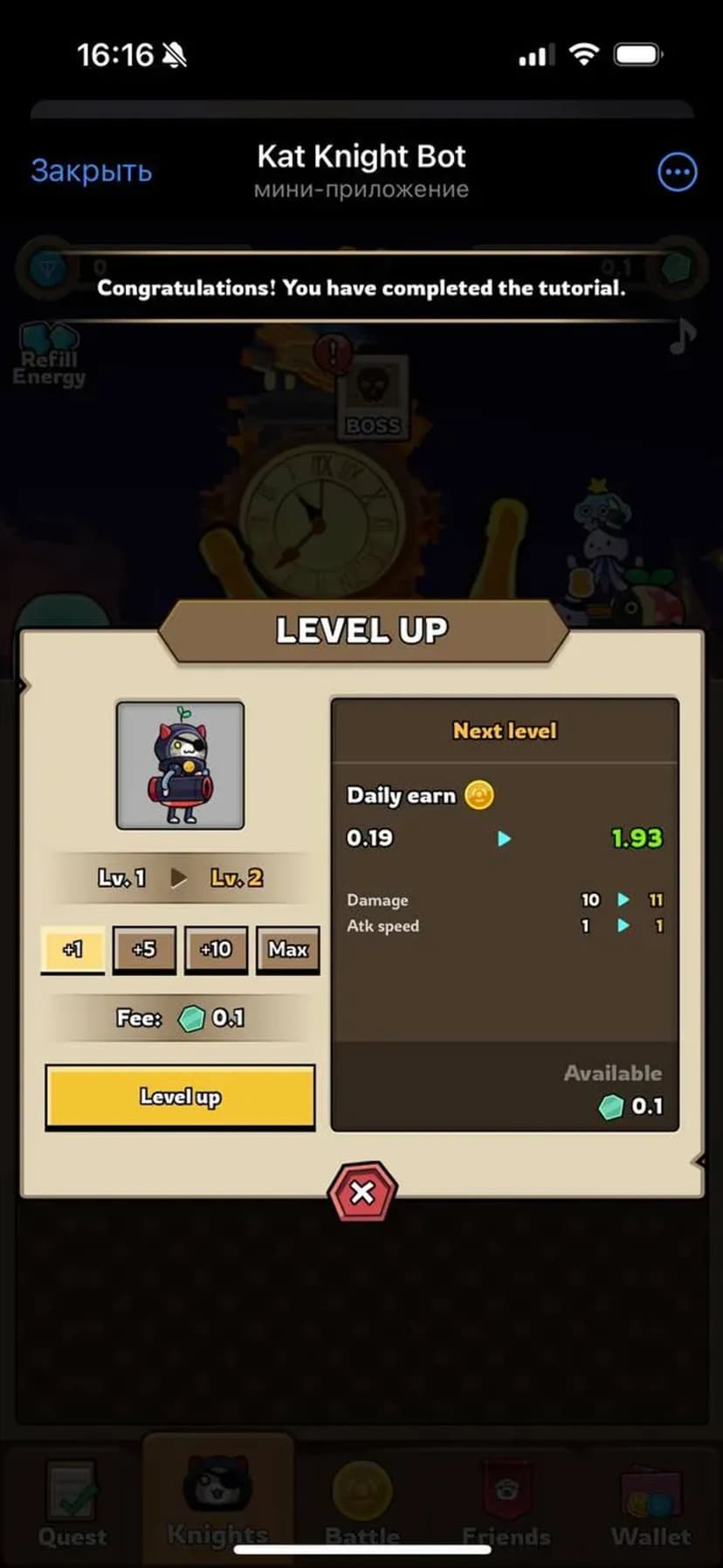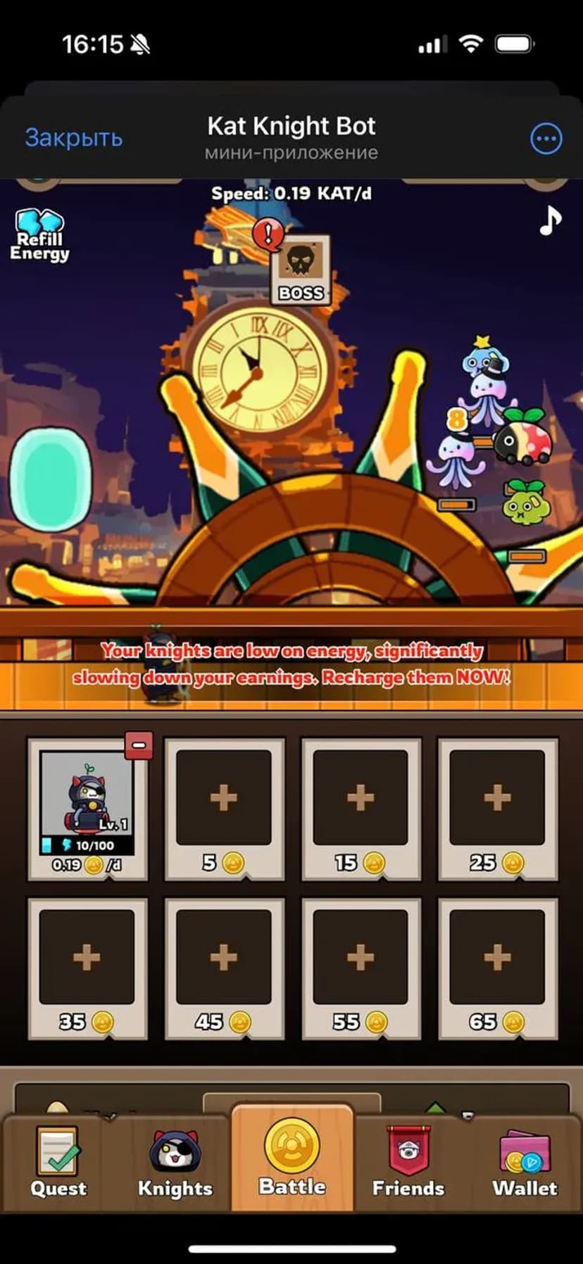 Ролевая игра с коллекцией кот-рыцарей, боями на TON и заработком $KAT.