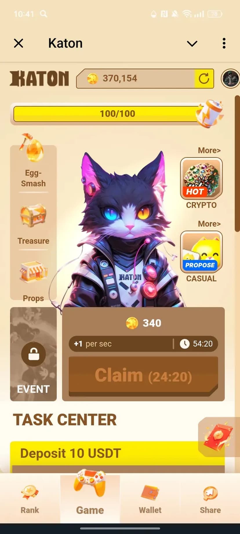 Katon — платформа в Telegram, объединяющая игры с механиками Play‑To‑Earn. Участники выполняют игровые задания и получают внутриигровую валюту KATON.