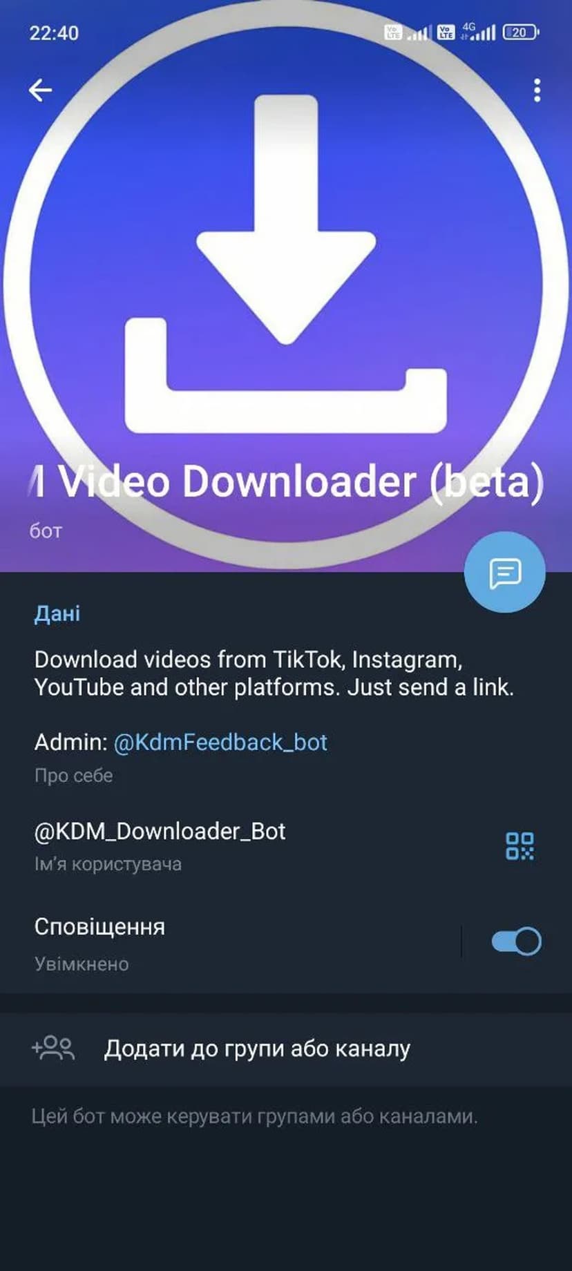 *Нажимая "Открыть в Telegram", вы перейдете к приложению KDM Video Downloader • beta в мессенджере Telegram