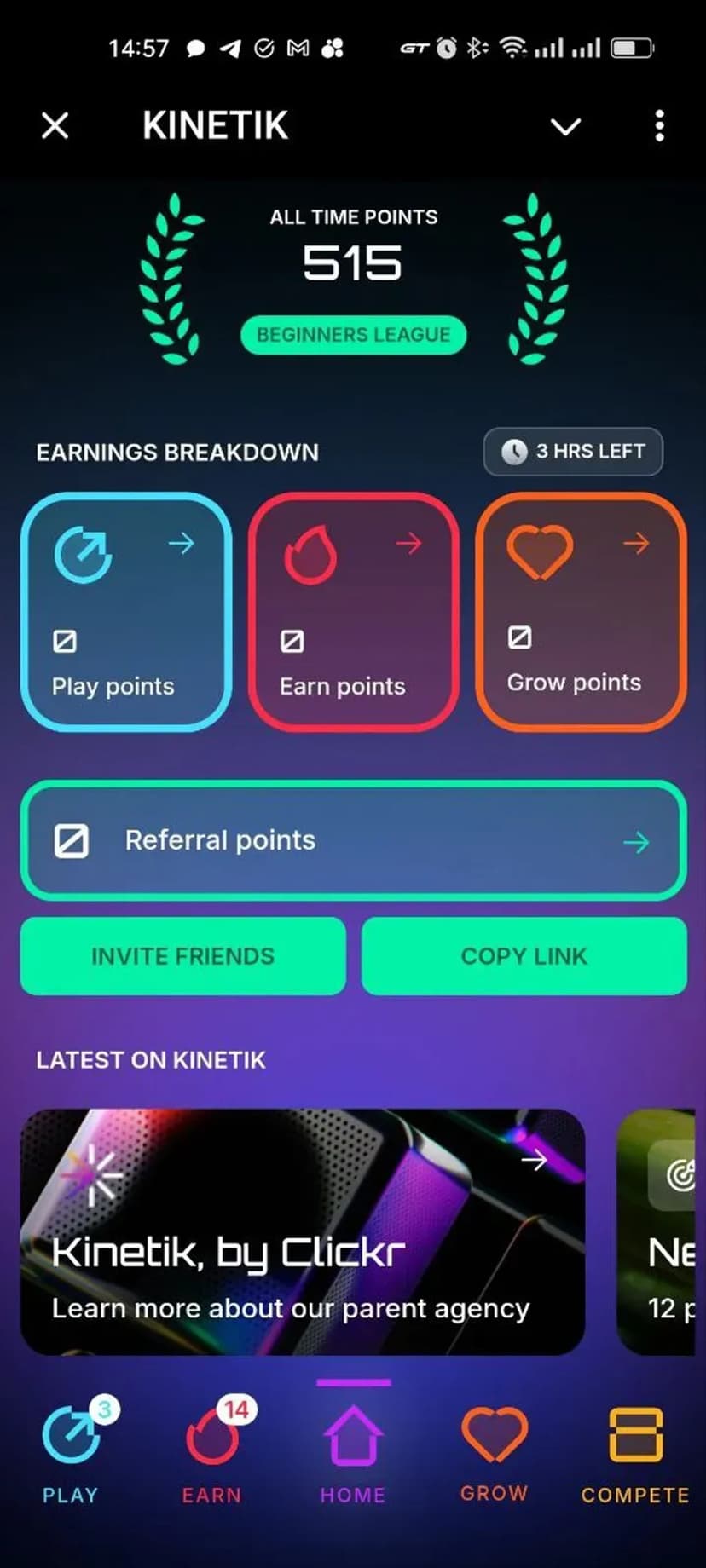 Технические особенности: KINETIK работает как мини‑приложение в Telegram, не требует отдельной установки — достаточно аккаунта. Удобный интерфейс позволяет быстро добавлять миссии, просматривать статистику и участвовать в глобальных или приватных челленджах с другими пользователями.