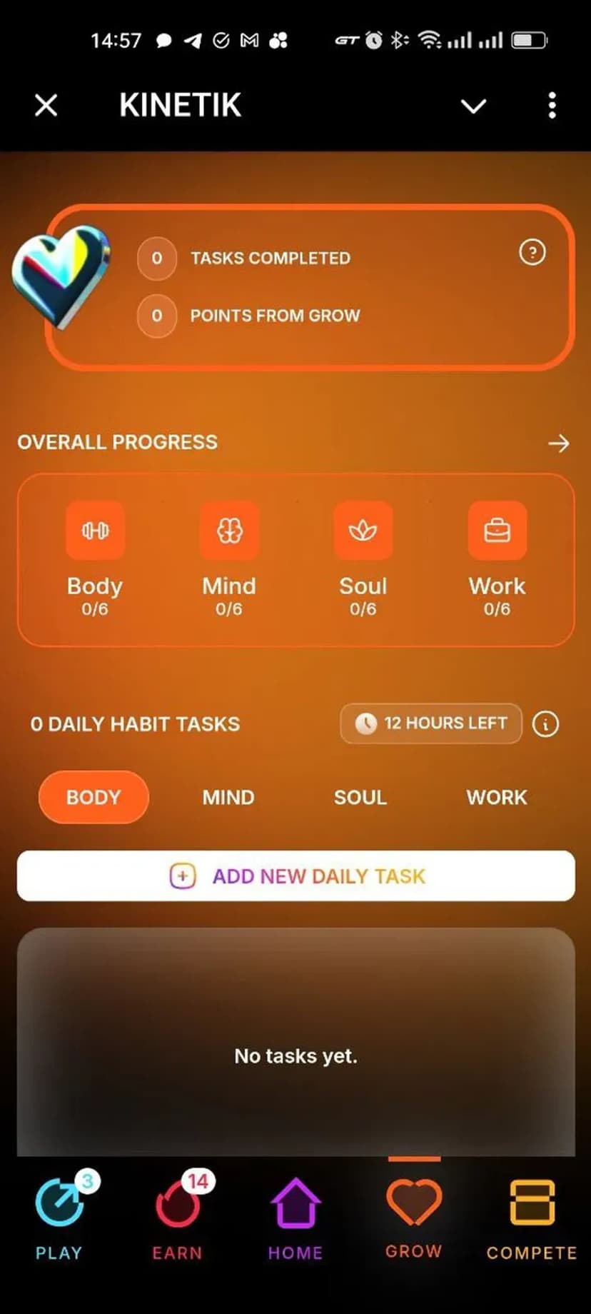 KINETIK превращает привычки и повседневные задачи в игровые миссии: выполняя их, вы зарабатываете баллы и достижения, а прогресс становится видимым и сравнимым с другими участниками.