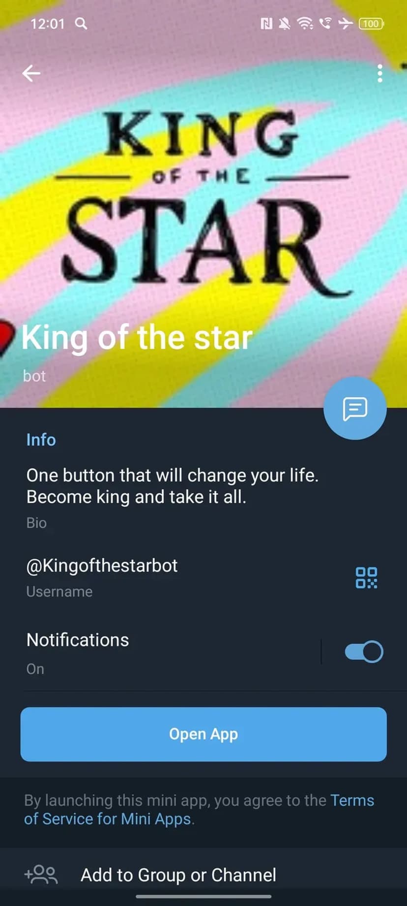 *Нажимая "Открыть в Telegram", вы перейдете к приложению King of the star в мессенджере Telegram