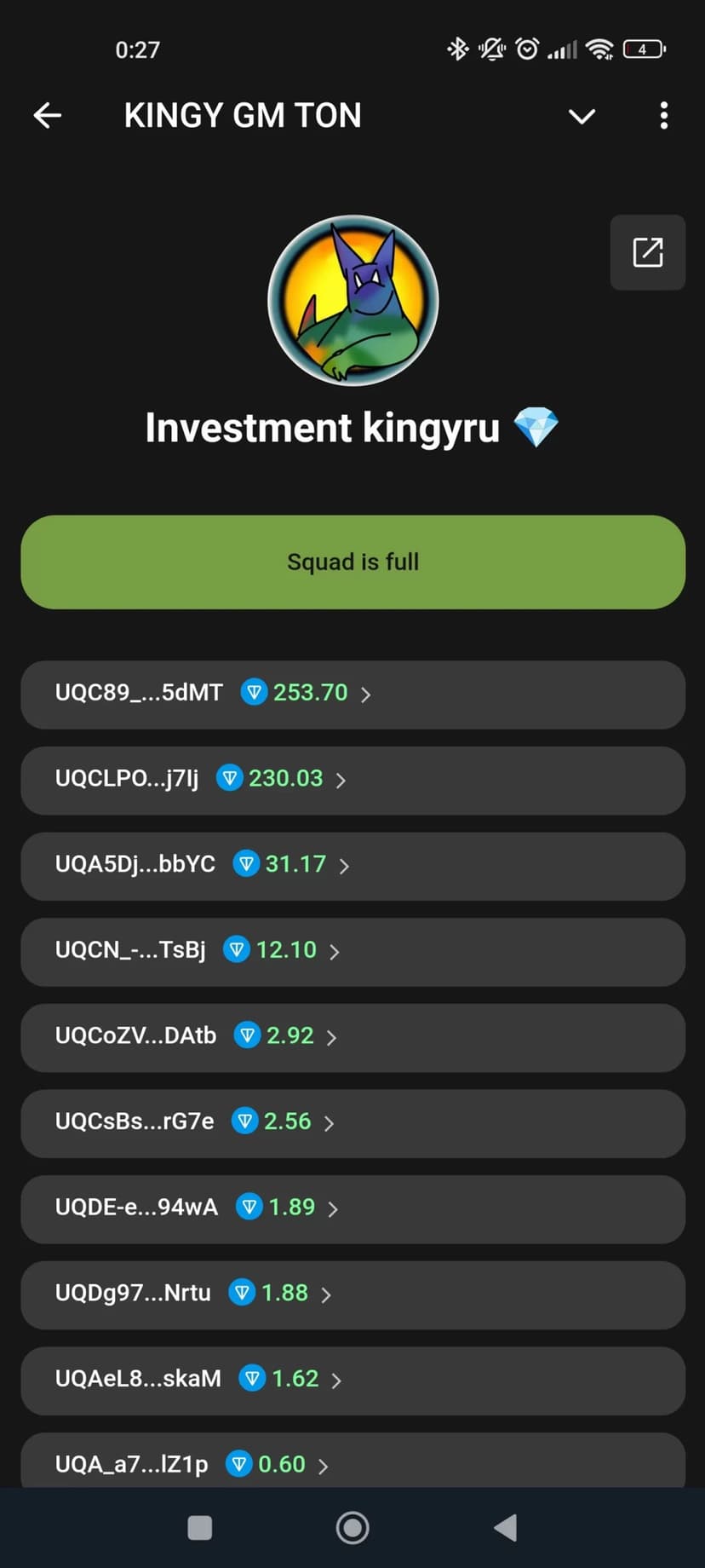 - Токен $KINGY: выпущен в феврале 2023 года; общая эмиссия — 10 000 000 токенов, часть которых сжигается. Токен используется для оплаты услуг и доступен для торговли на децентрализованных биржах, таких как DeDust и STON.fi.