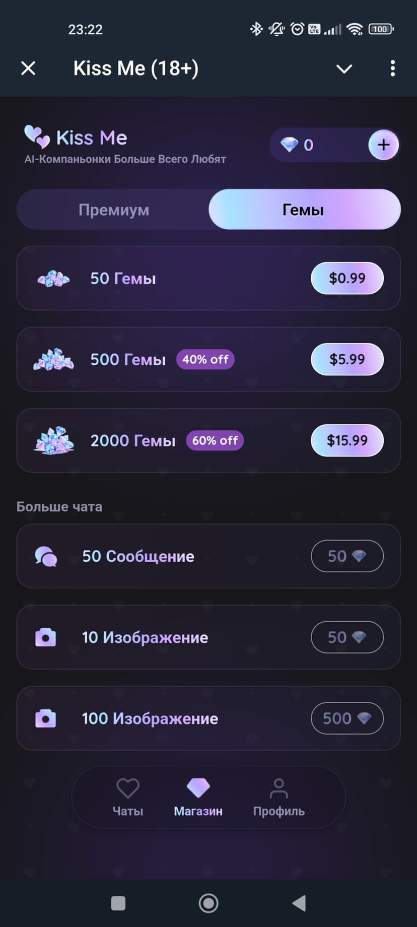 - Настройки настроения беседы: романтичное, игривое или откровенное.